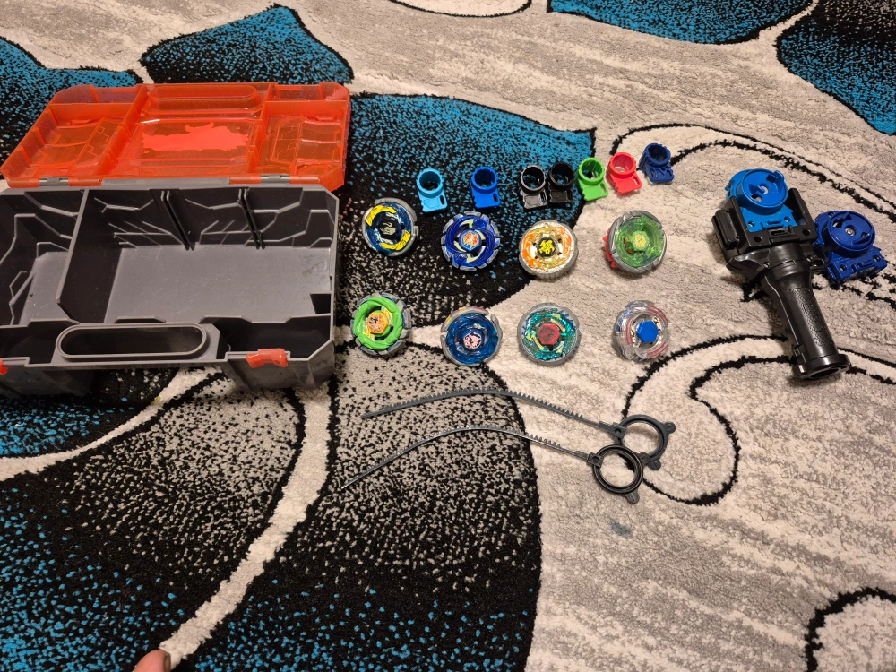75Selling a BeyWarriors Shogun Steel case that comes with a variety of Beyblades! The case is orange and grey, and it's perfect for storing and carrying your collection. Great for any Beyblade enthusiast!