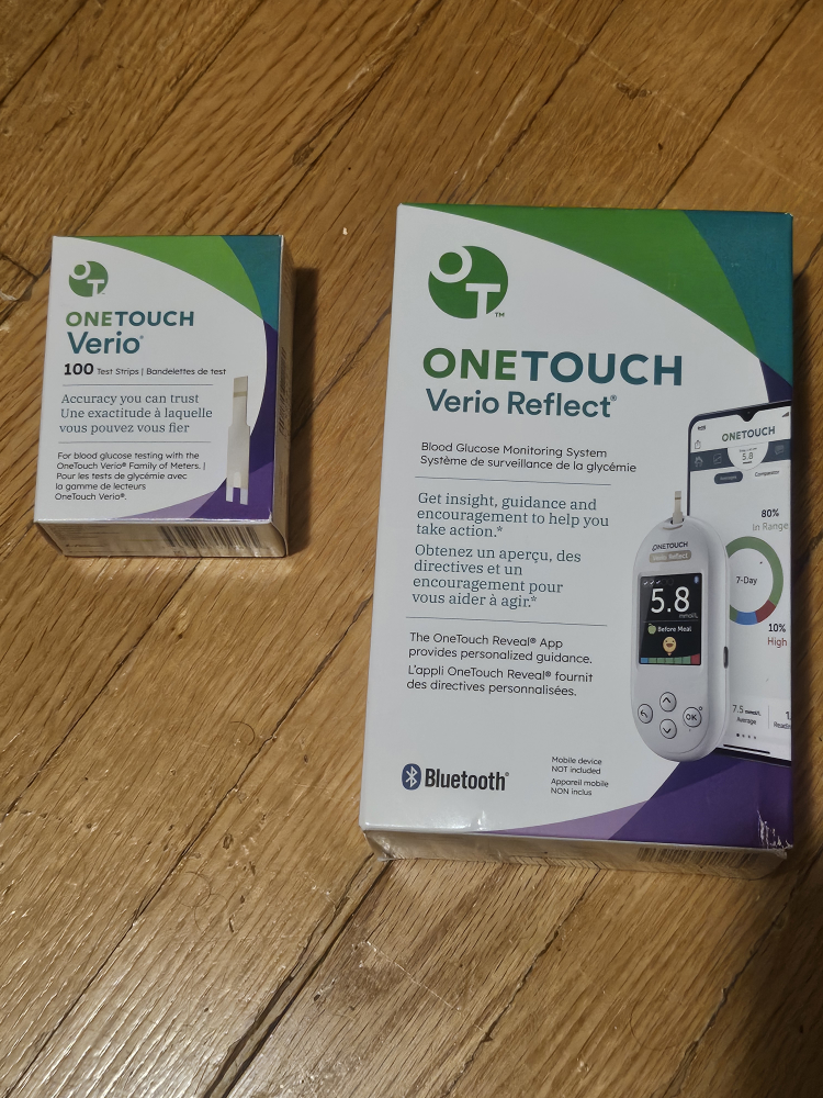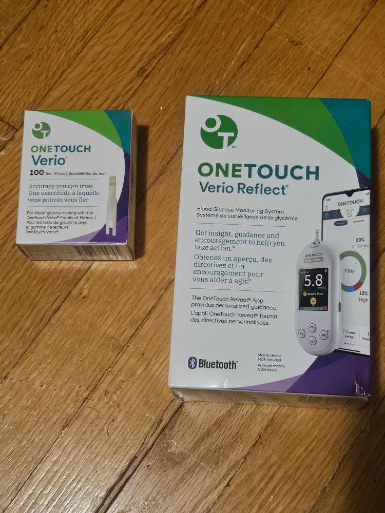 Selling a OneTouch Verio Reflect blood glucose monitoring system and OneTouch Verio 100 test strips.