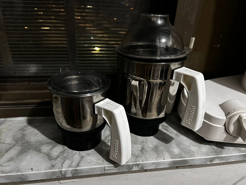 Preethi ECO Plus: used for less than one year. Grinds very well and works perfectly. Extra rubber strips for the jars and white blade locks are also included.