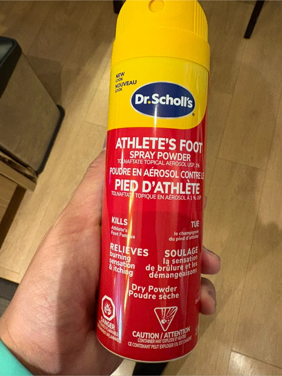 I'm selling a can of Dr. Scholl's Athlete's Foot Spray Powder. It's designed to relieve burning sensation and itching. The expiration date is January 2026