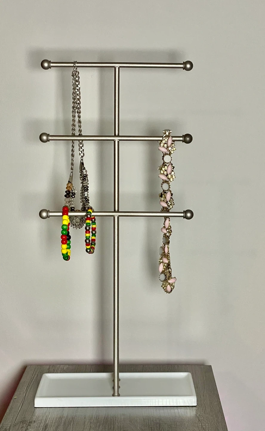 Selling a jewelry stand that's perfect for organizing your necklaces and bracelets! It has multiple tiers to keep everything neat and tidy