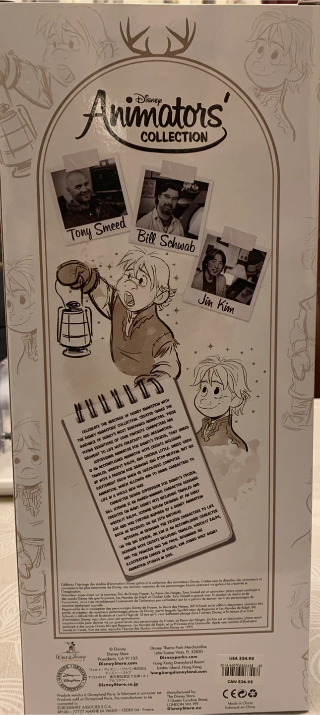 Bring home a piece of Disney magic with this Disney Store Animators’ Collection Kristoff Doll from Frozen. This beautifully detailed 16-inch doll reimagines Kristoff as a young boy, designed by Disney animators with authentic touches from the movie. ✨ Features: • Official Disney Store exclusive • Part of the Animators’ Collection • Doll stands about 16 inches tall • Dressed in his signature outfit with faux fur trim and embroidered details • Comes in the original display box, perfect for collectors or gifting 💡 Condition: Brand new in box (never opened).