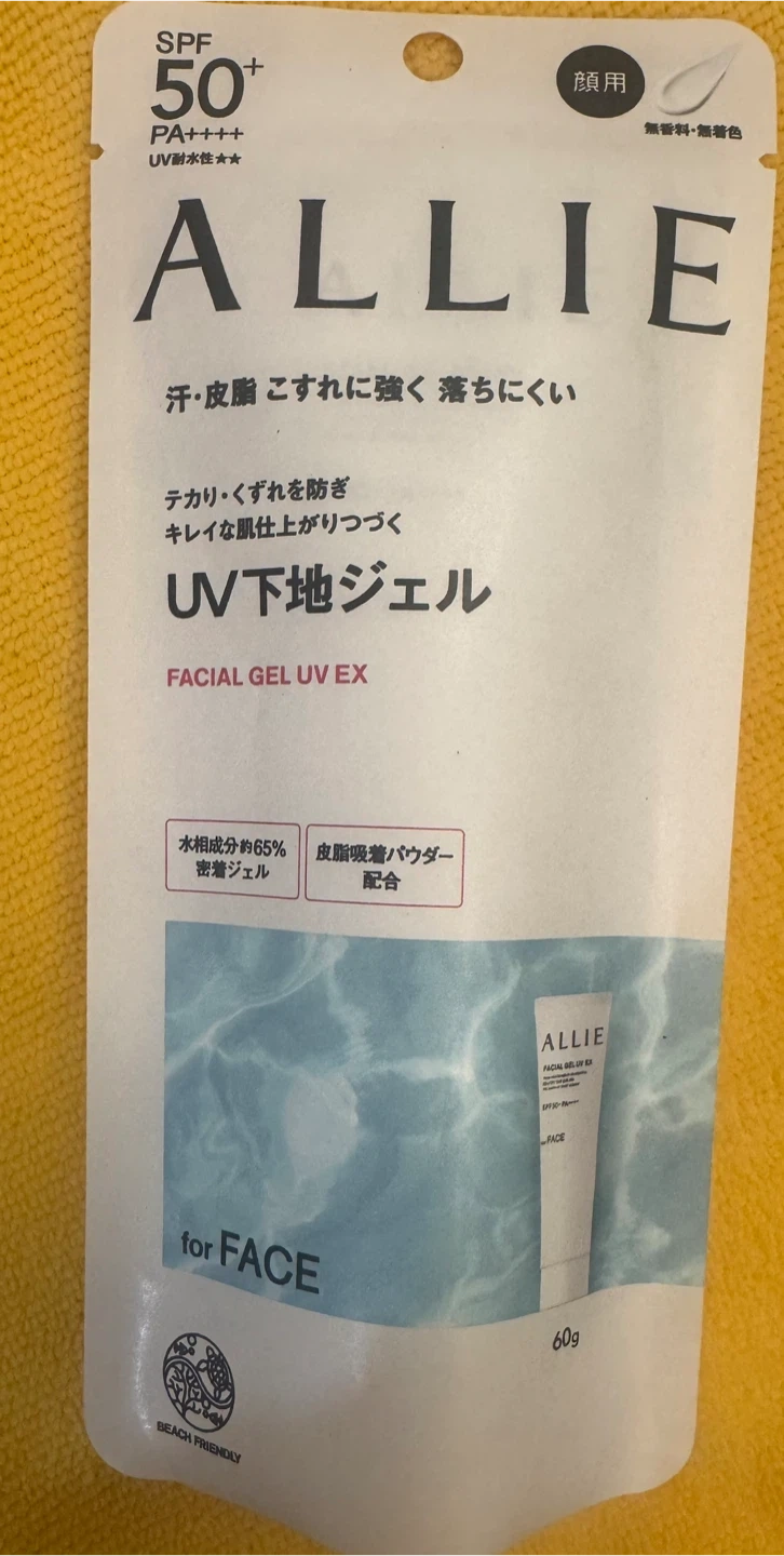 I'm selling an Allie Facial Gel UV EX SPF50+ sunscreen. It's a lightweight gel formula that provides high SPF 50+ protection. It's designed to be sweat and sebum resistant, helping to prevent shine and makeup smudging. Perfect for daily use to keep your skin protected and looking great! Sealed