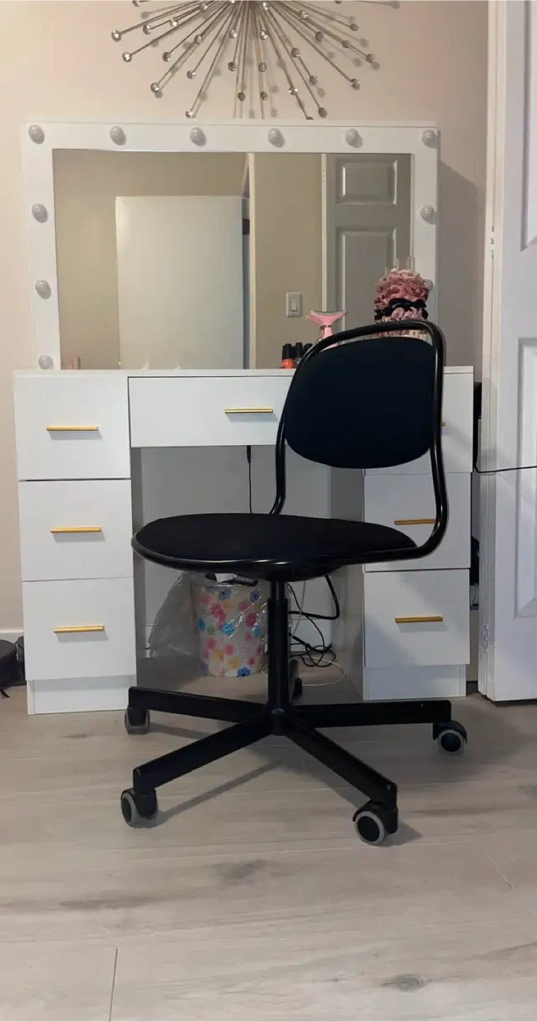 Selling a sleek and comfy desk chair that’s perfect for your home office, study space, or vanity setup! ✅ Smooth swivel & wheels – rolls effortlessly ✅ Cushioned seat and back – sit comfortably for hours ✅ Clean, modern design – fits any space ✅ Excellent condition – barely used