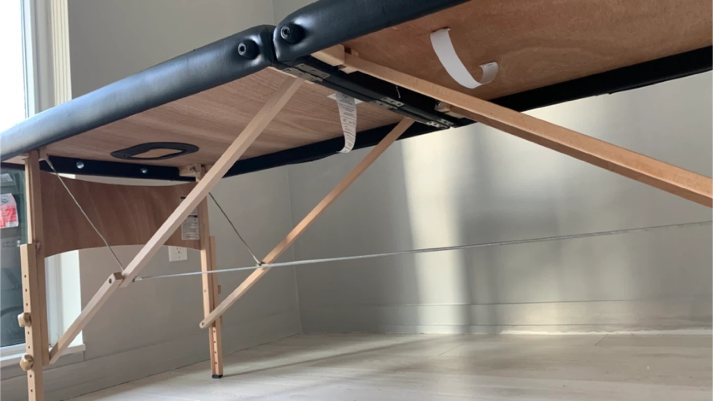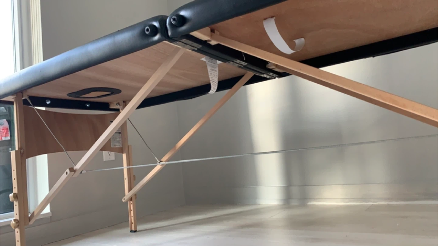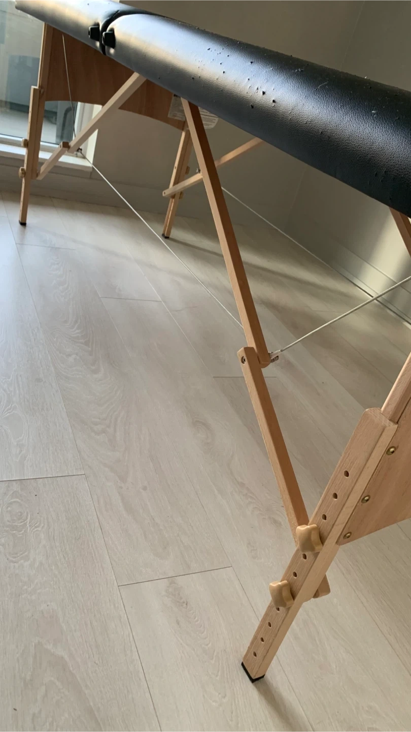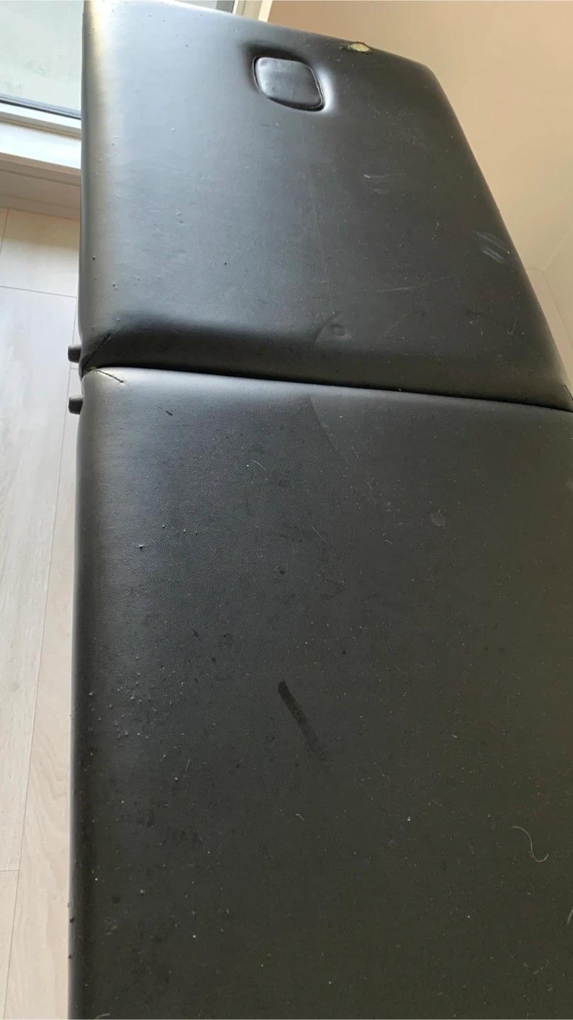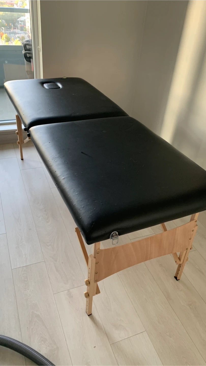 This massage table needs upholstery, the pleather part is damaged but the base is in the perfect condition.