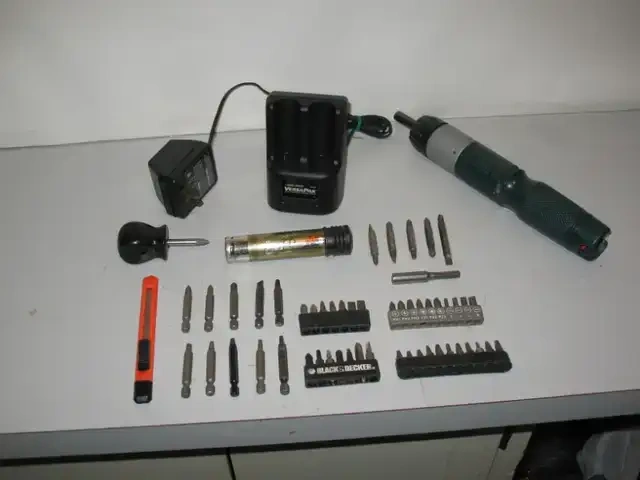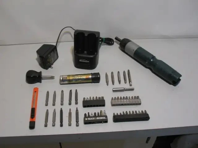 * cordless rechargeable screwdriver (with forward and reverse drive)