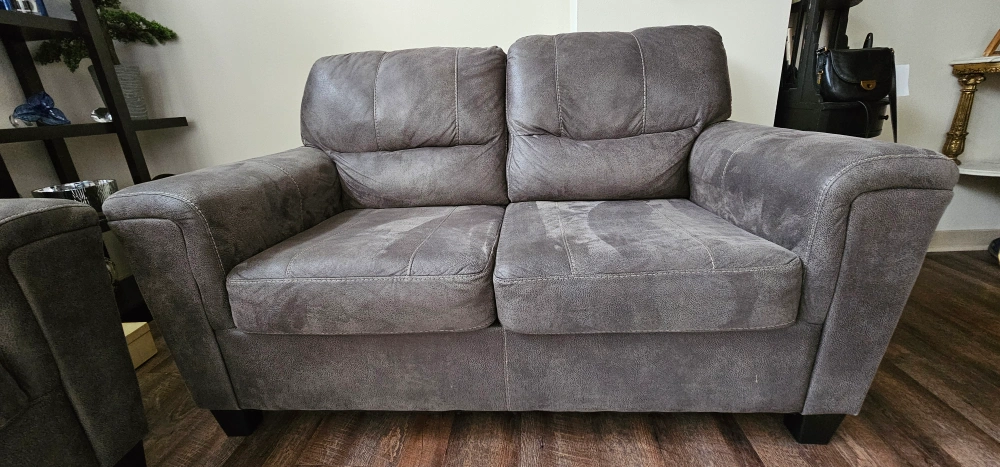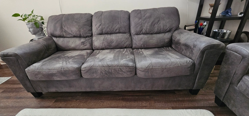 Selling a comfy grey loveseat and sofa set. Both pieces are in good condition and would be perfect for a living room or den. They have a soft, suede-like feel to the material. Smoke and pet free!Great for relaxing! Sofa size is W: 88 inches D:38 H:34 the loveseat size is W:64 D:38 H:34 inches. Location is Yonge and Eglinton!