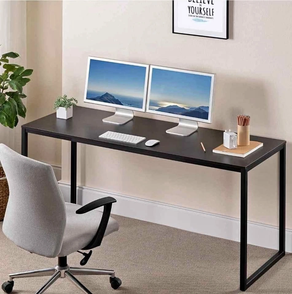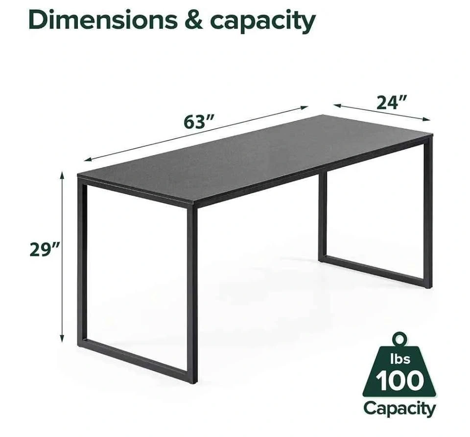 Brand new Zinus desk/table. It comes unassembled in the original sealed, never-opened box with all manufacturer parts and hardware for easy assembly. * Table only, chair not included Retails at Amazon for $237 + tax. Zinus Modern Studio Collection Soho 63 x 24 Inch Rectangular Dining Table/Table Only/Office Desk/Computer Table, Workstation, Espresso Product details: Brand: Zinus Shape: Rectangular Desk design: Computer Desk Product Dimensions: 61D x 160W x 73.7H Centimetres Colour: Espresso Style: Modern Perfect for your home office, bedroom workspace or living area, this clean-lined contemporary desk helps pull together any room in need of a little extra table space Solid steel frame and thick tabletop are built to hold up to 100 lbs of evenly distributed weight DIMENSIONS: 63" L x 24" W x 29" H All parts, tools and instructions are expertly packed in one compact box for simple setup that takes less than 30 minutes