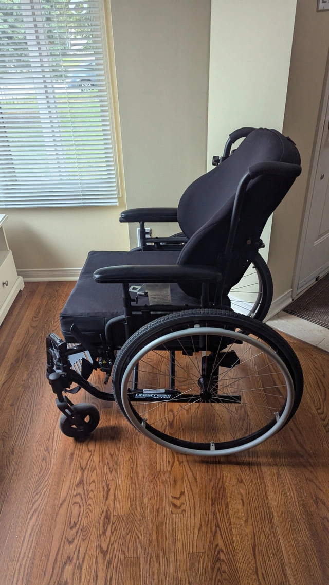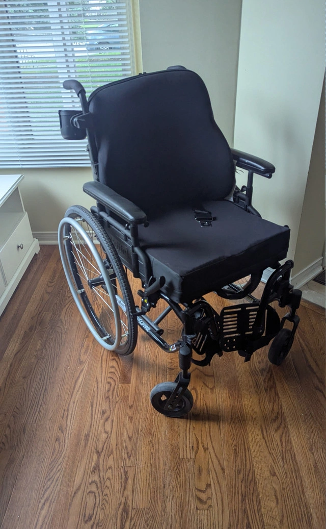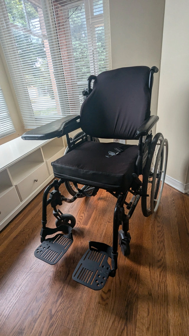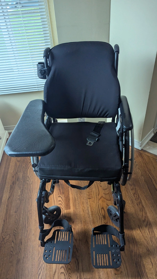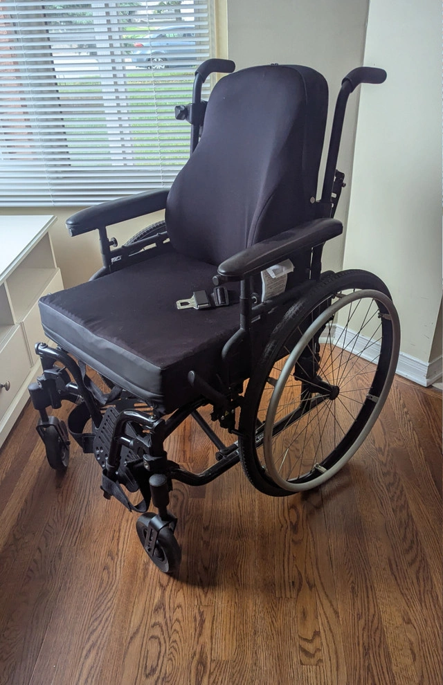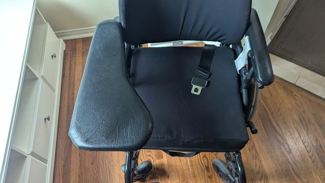 This deluxe lightweight wheelchair is only 26 lbs and can be adjusted to the user. It is very portable yet sturdy and comes with all the attachments including armrest. This chair is lightly used and originally cost $1200. Pick up is near Hillcrest Mall or Fairview Mall. Features Single double-cross system Armchair configurable according to the needs of the user Synergy wheels are lightweight and durable (included) Variety of colors and available print Specifications Net weight 26 lb Weight capacity 250 lb (350 lb with HD configuration) Seat heights 15” – 19” Seat widths 14” – 21” Seat depths 14” – 20” Condition: Used - Good