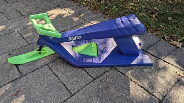This vintage 90's Fazer Sled is in good condition. This Toboggan Snow Sled was made by SLM & its dimensions are 34" x 9" x 14" Pick up is at either Sheppard Station, Hillcrest Mall or around Fairview Mall