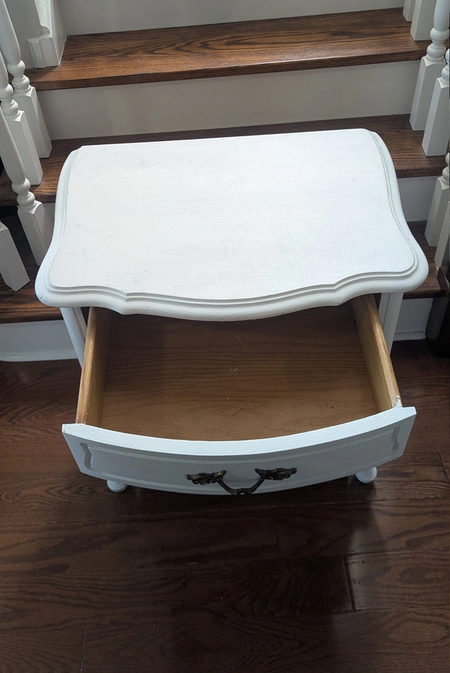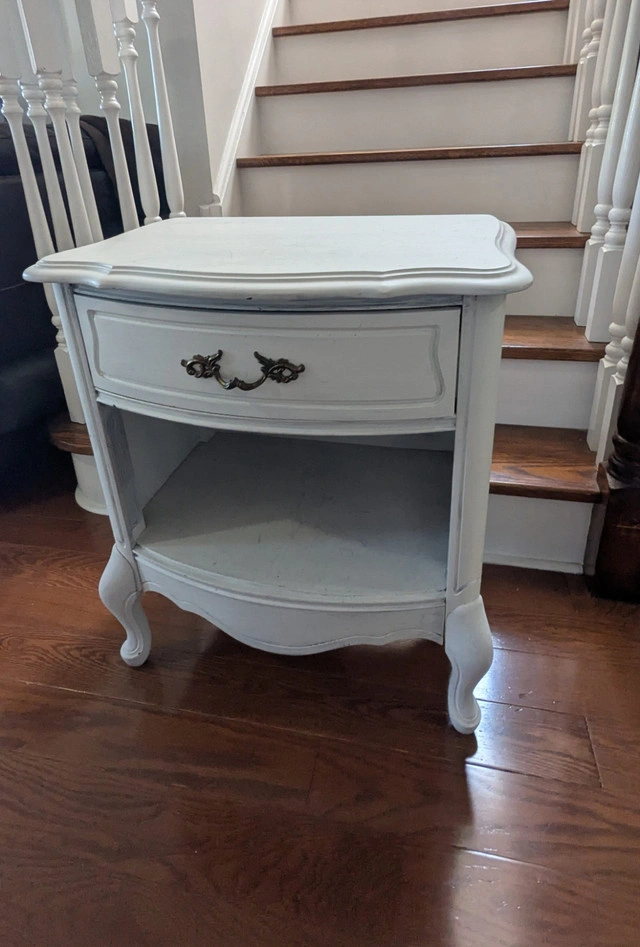 This is a small white solid wood table perfect as a hallway table or end table. Pick up is at the Bayview and Hwy 7 area of Richmond Hill but can also meet at Fairview Mall. Let me know if you're interested!