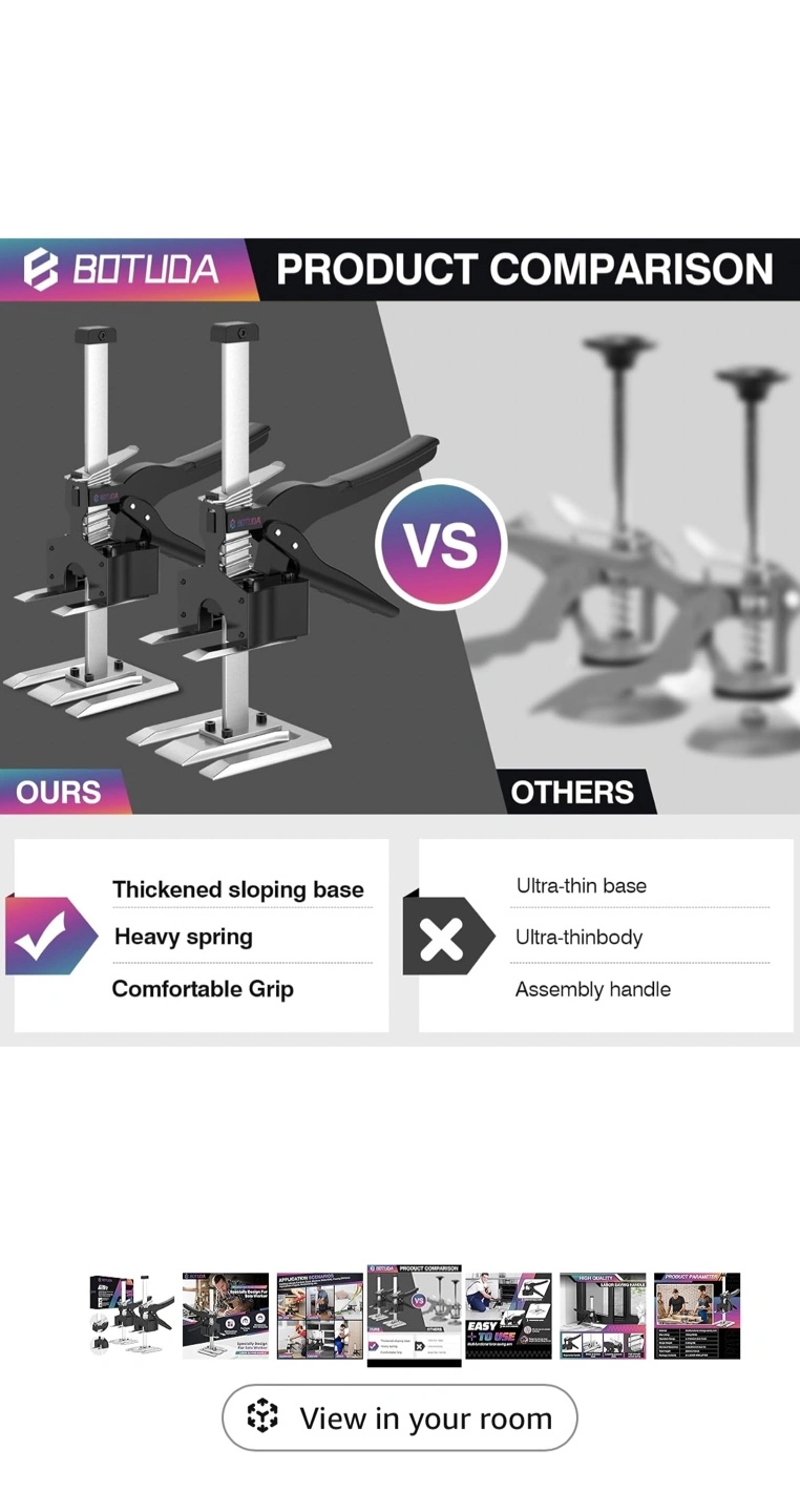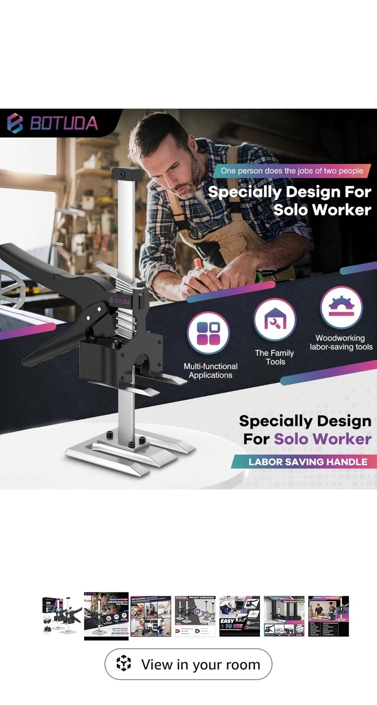 Get ready to make your DIY and furniture projects a breeze with this BOTUDA labor-saving hand lifting jack tool! This tool is designed for solo workers, making tasks like installing cabinets, doors, and appliances much easier. It features a thickened sloping base, heavy spring, and comfortable grip for efficient use. Originally listed for $189.99, now available for a great price!