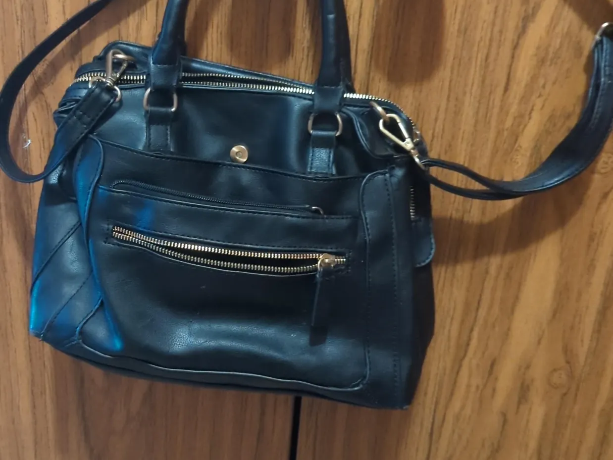 Selling a stylish black handbag! It features gold zippers and a convenient shoulder strap. It's in great condition and ready for a new owner