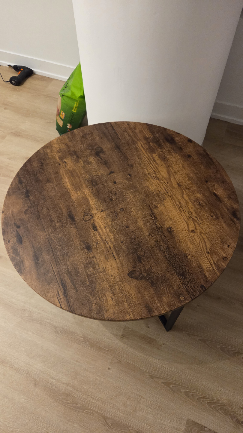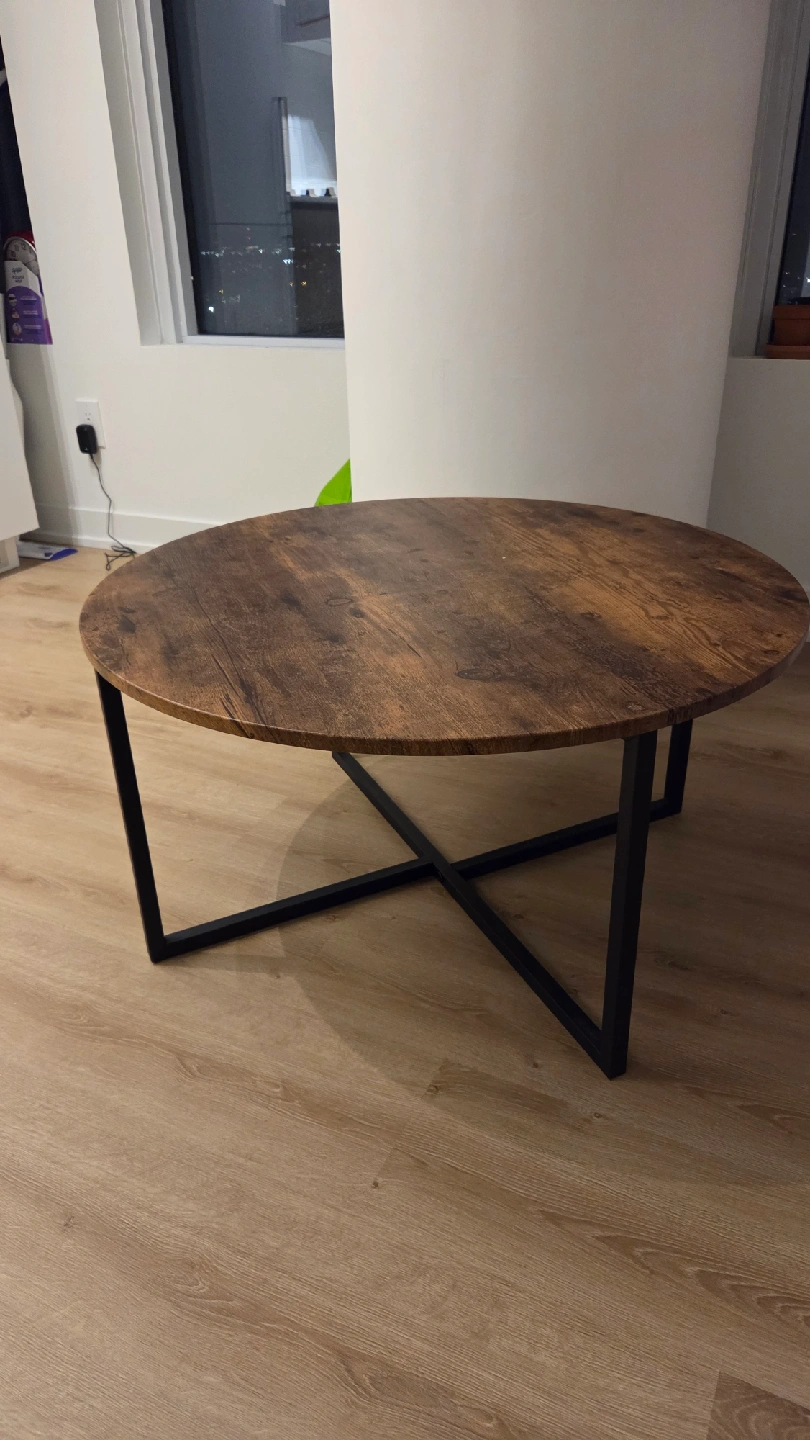 Selling a round coffee table with a nice wood grain finish. The legs are a simple black metal design. in great shape!
