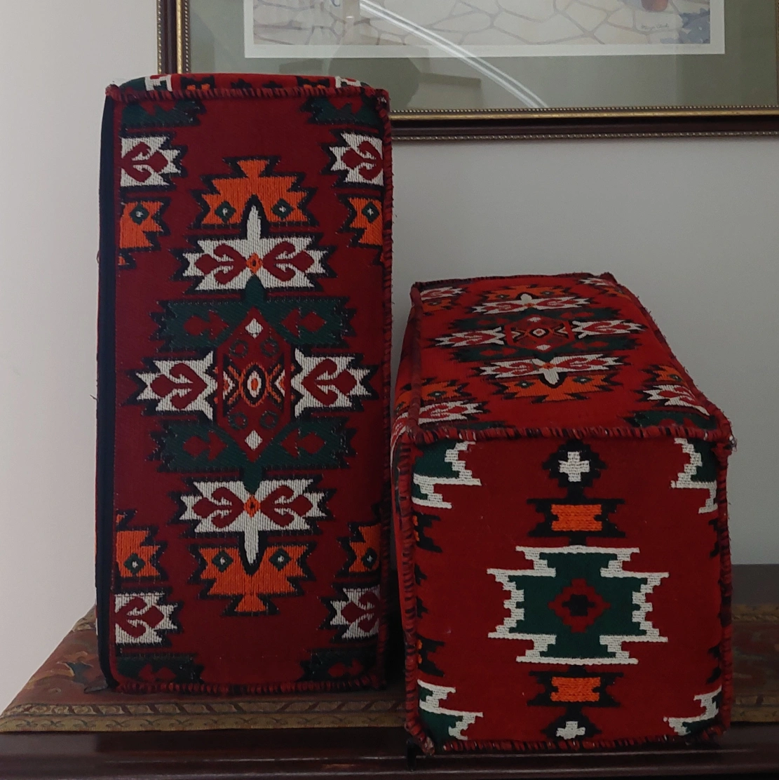 Red Geometric Patterned Arm Reat / Floor Cushions - Set of 2