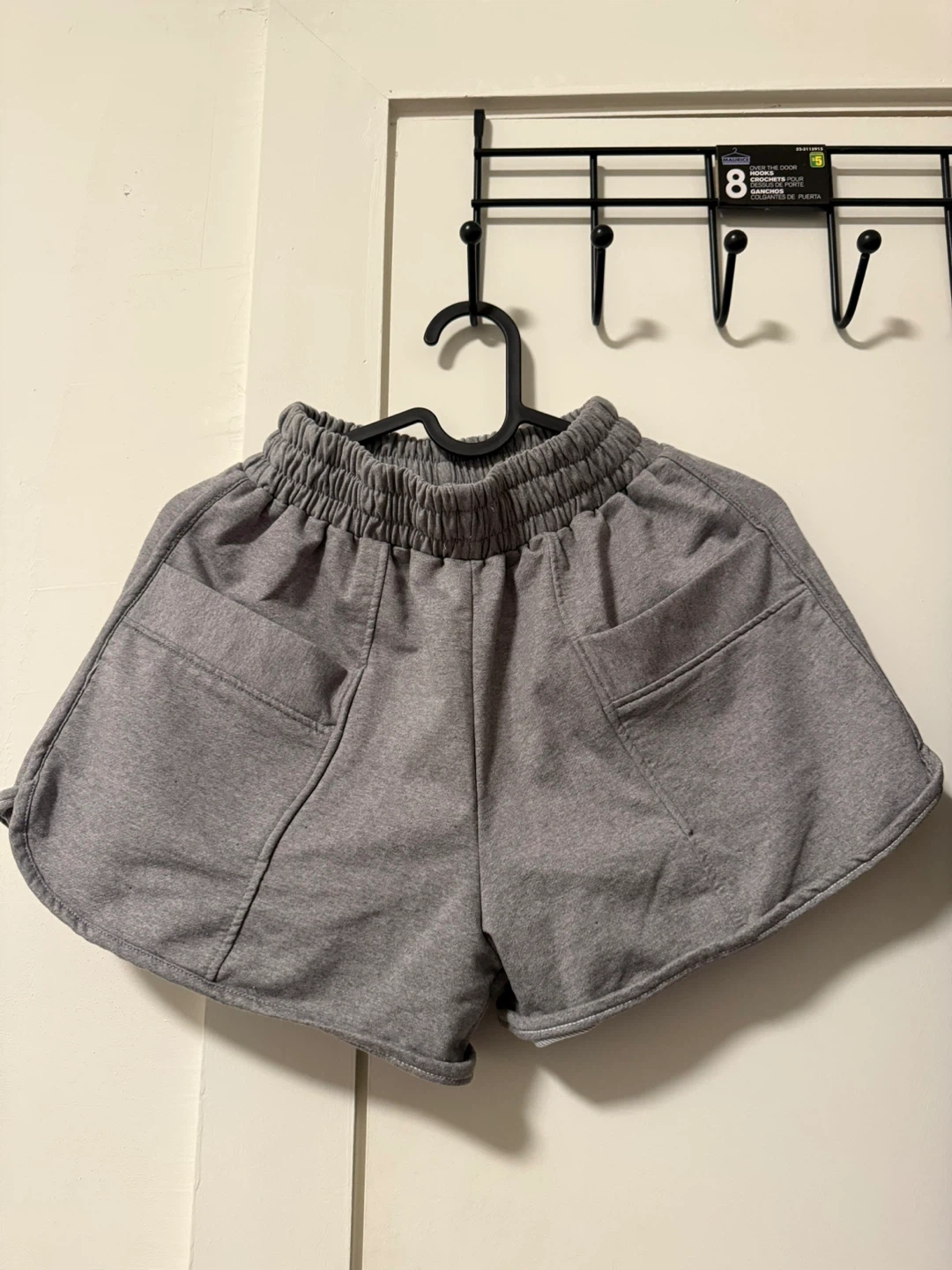 Selling a pair of comfy grey lounge shorts! They're a size small and in great condition. Perfect for relaxing at home or running errands. The material is soft and cozy, and they have handy pockets