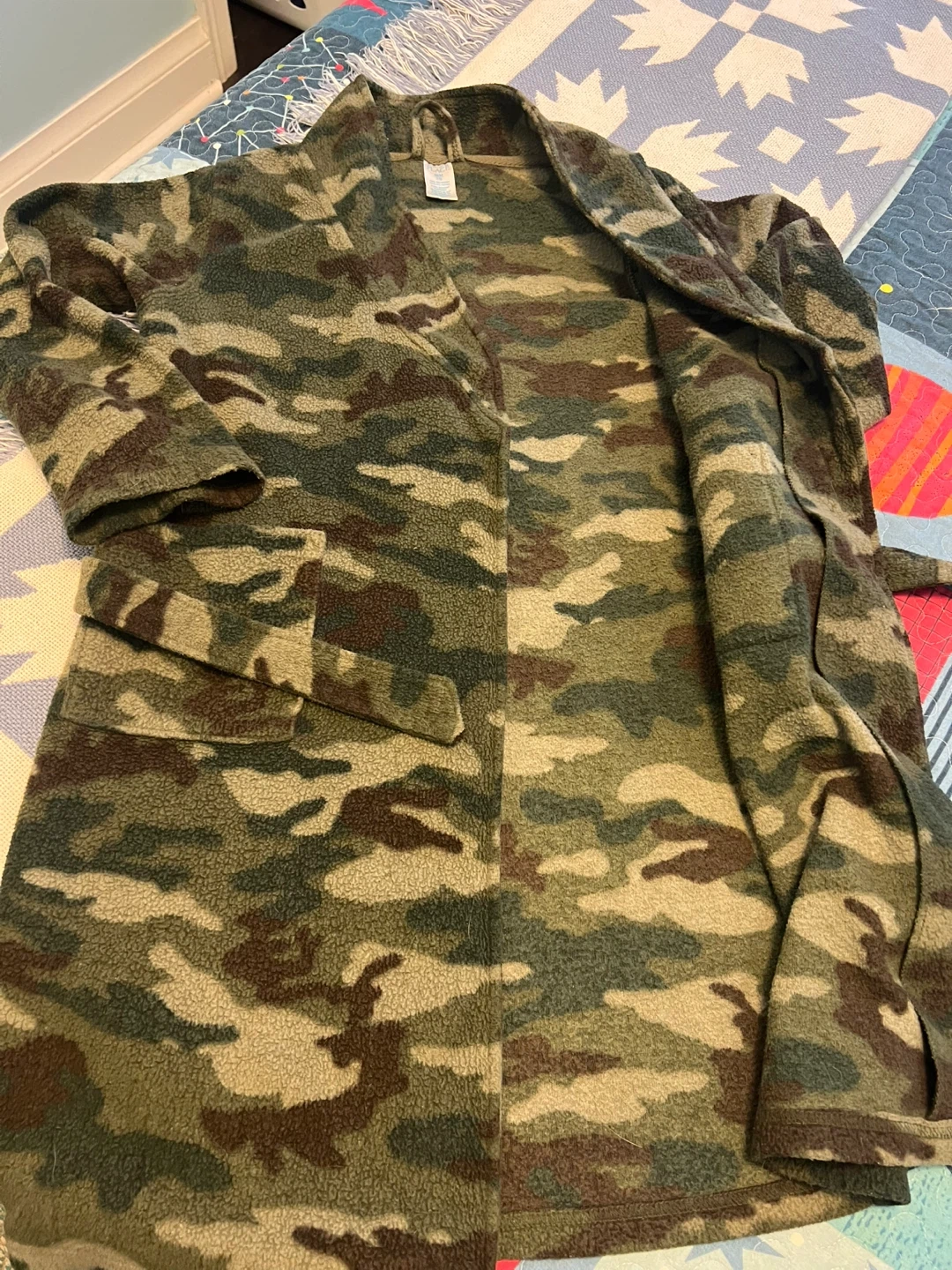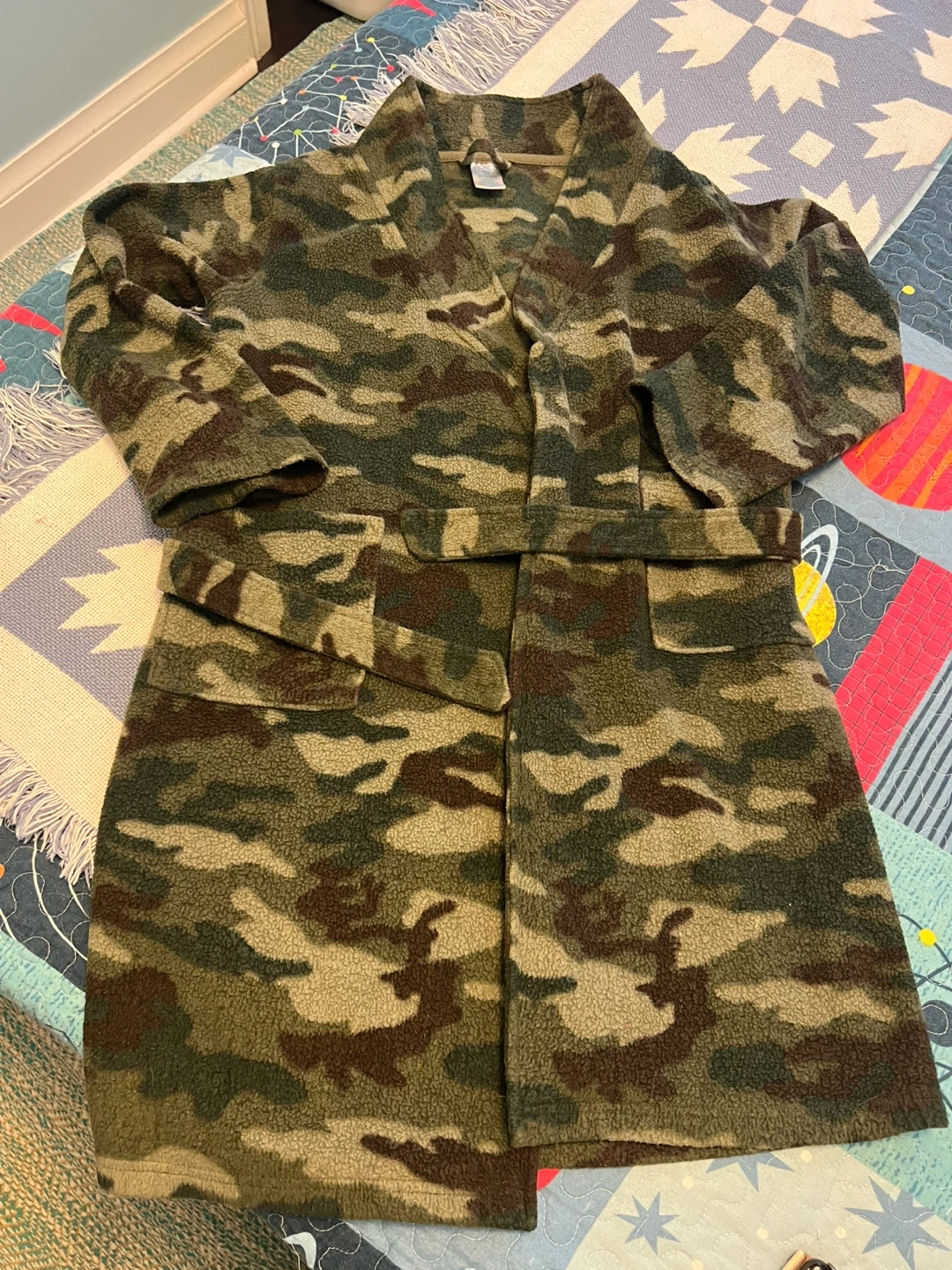 Cozy camo robe from The Children's Place. Size M/M (7/8) but can fit 9 - 10 small. Perfect for keeping warm and snug while gaming 🎮