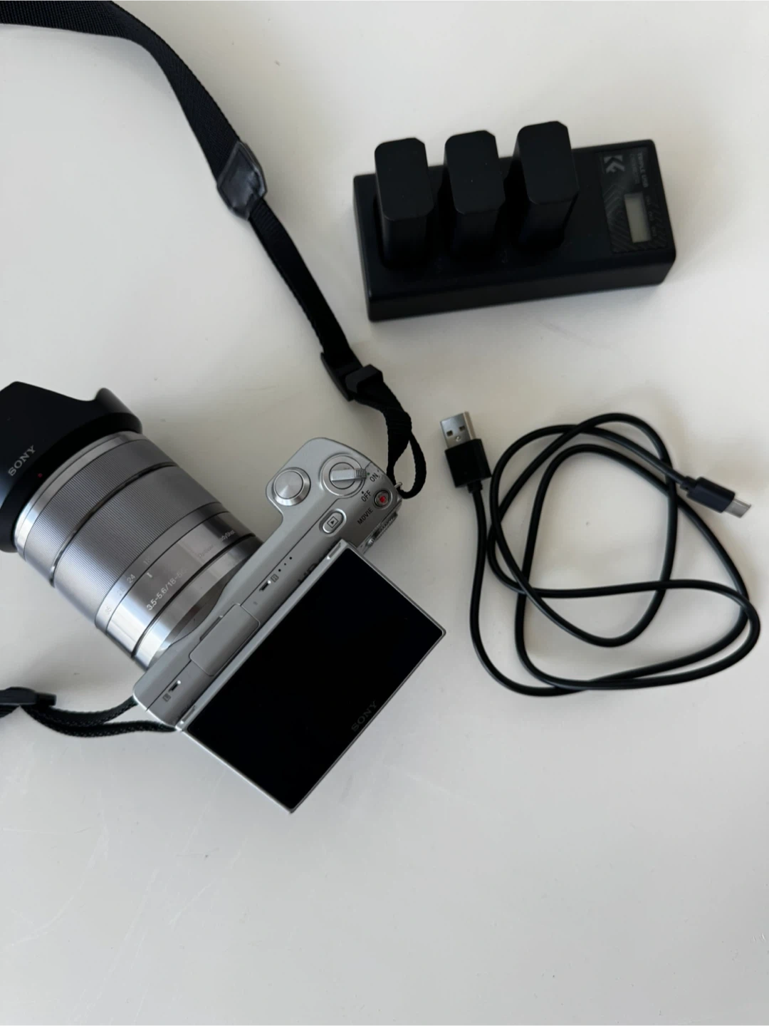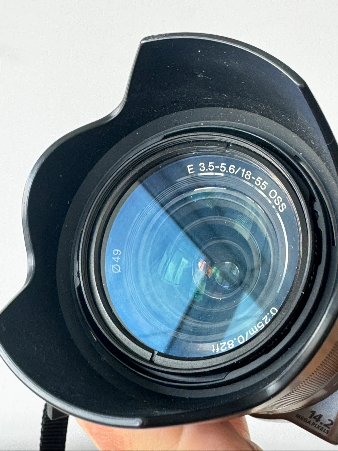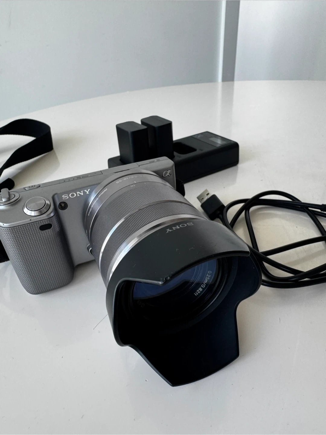 Selling a Sony NEX-5 digital camera with the SEL1855 lens. It's in great condition and ready for a new owner! The camera comes with the E 3.5-5.6/18-55 OSS lens. Included is the charger and strap.