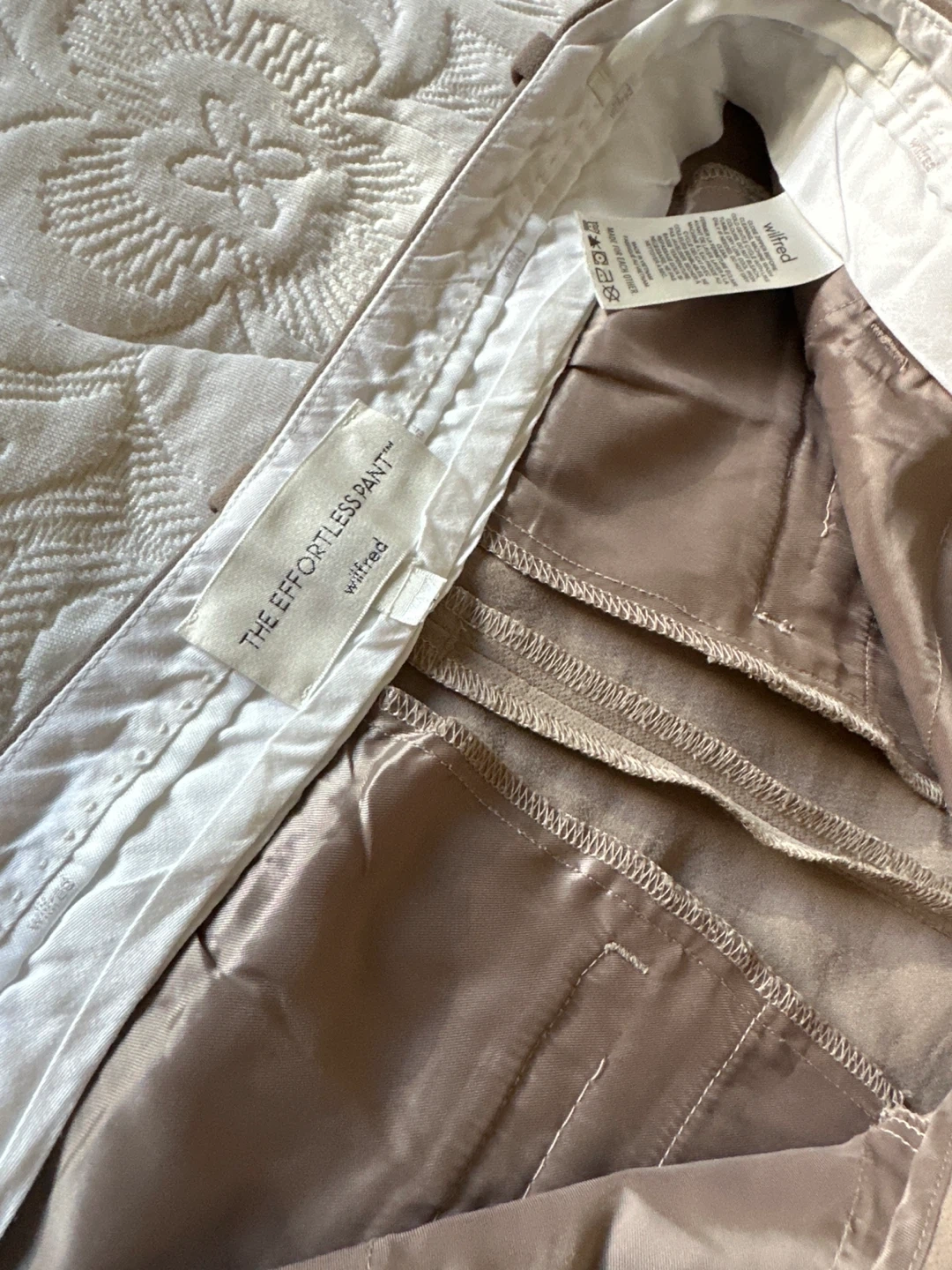 Selling a pair of Wilfred The Effortless Pants in a beautiful neutral colour. These are a 4 long and in great condition! They're super comfortable and stylish, perfect for any occasion.