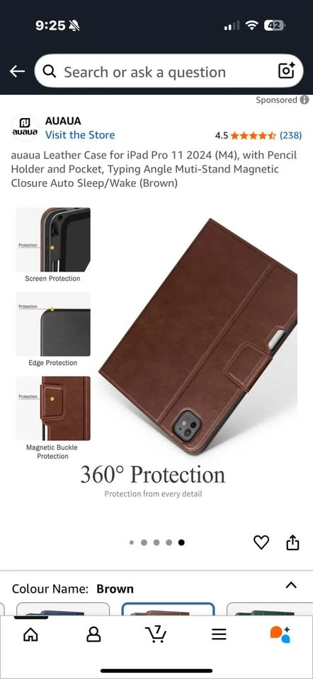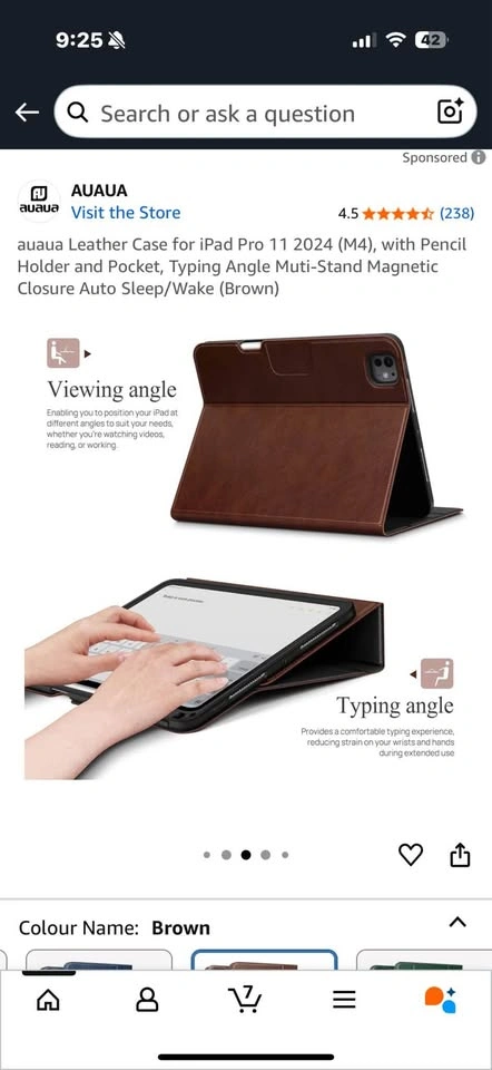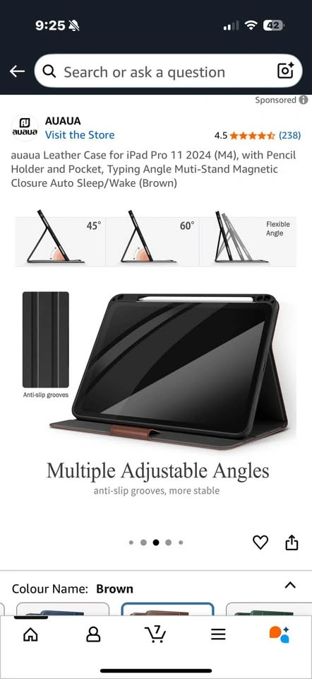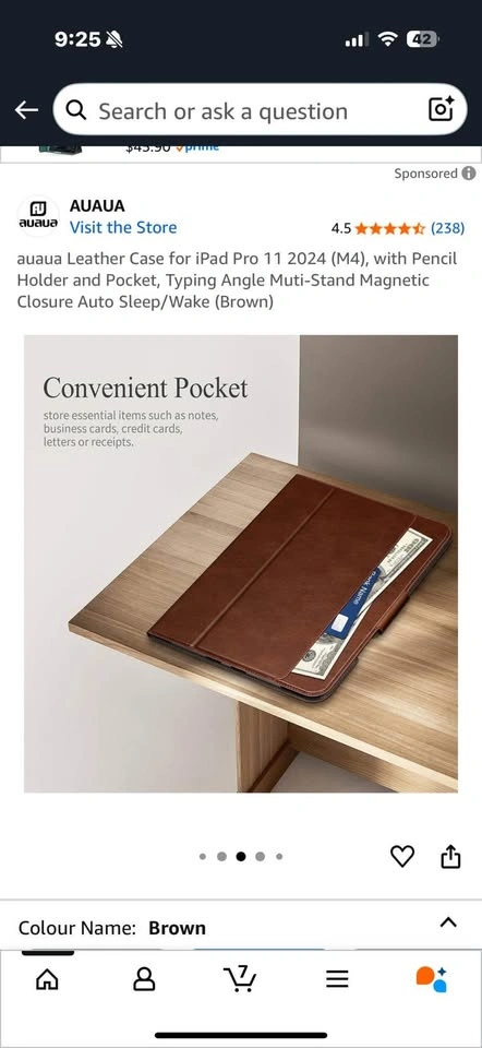 Leather Case for iPad Pro or Air 11 inches with Pencil Holder and Pocket, Typing Angle Muti-Stand Magnetic Closure Auto Sleep/Wake (Brown) Pick up and cash only π