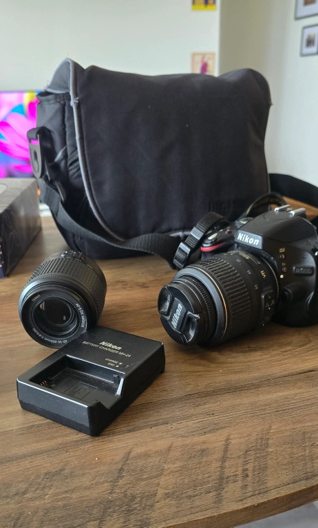 60Selling a Nikon D5100 DSLR camera in great condition! It comes with two lenses, a battery charger, and a camera bag. Perfect for someone looking to get into photography or upgrade their current setup includes bag and 2 Lenses 18 to 55mm 55 to 200mm