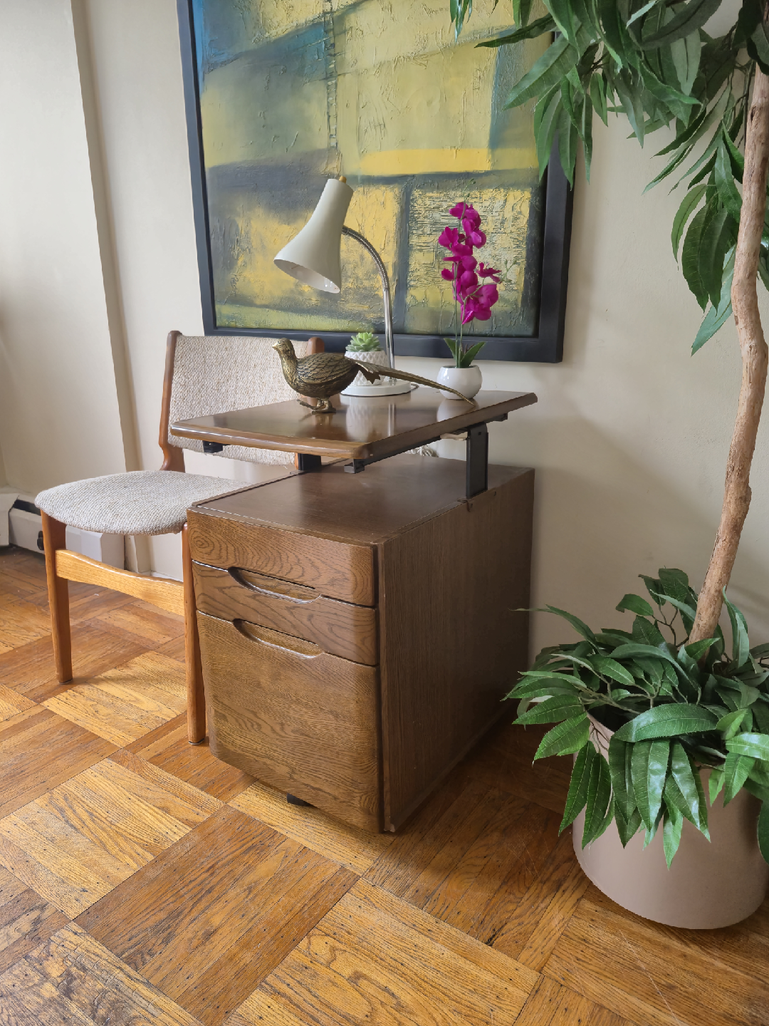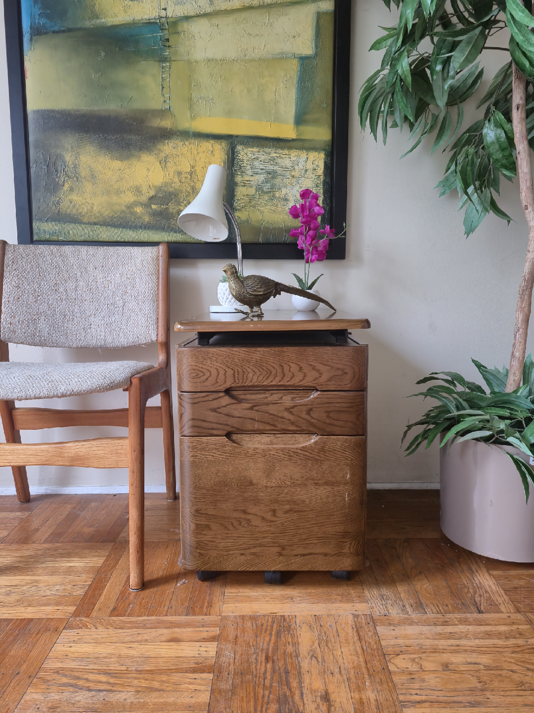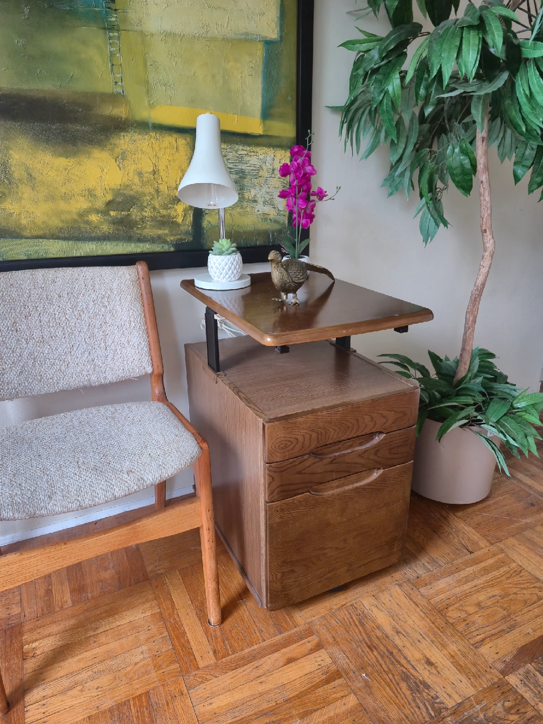 Wooden Side Table / Filing Cabinet with Lift-Up Top