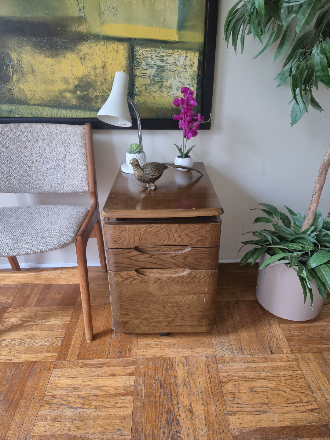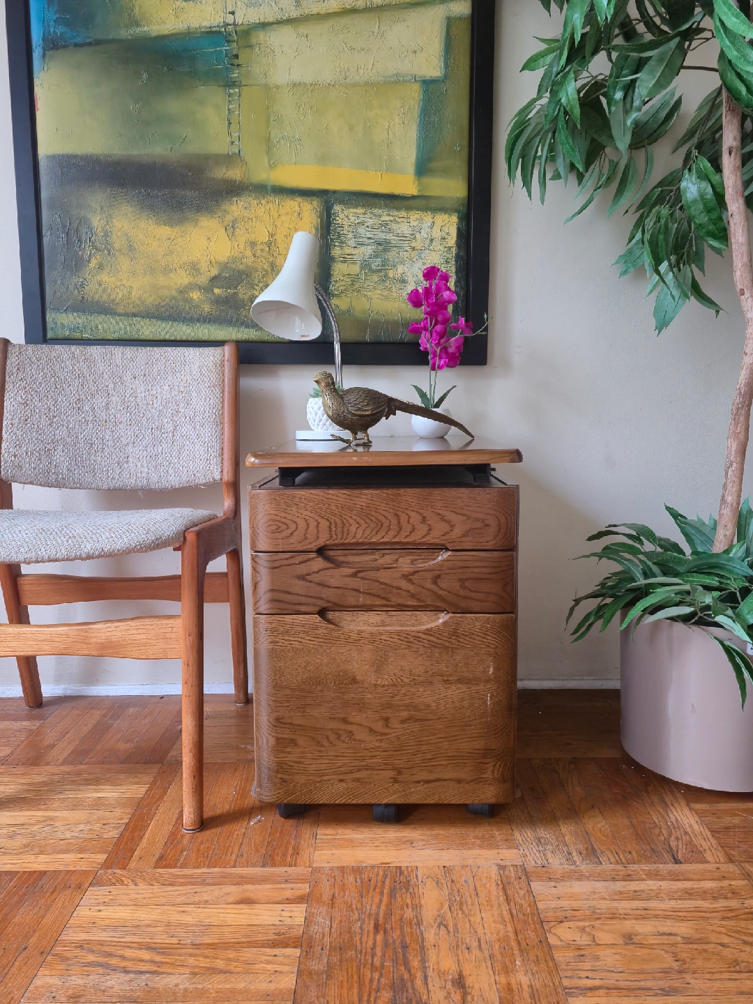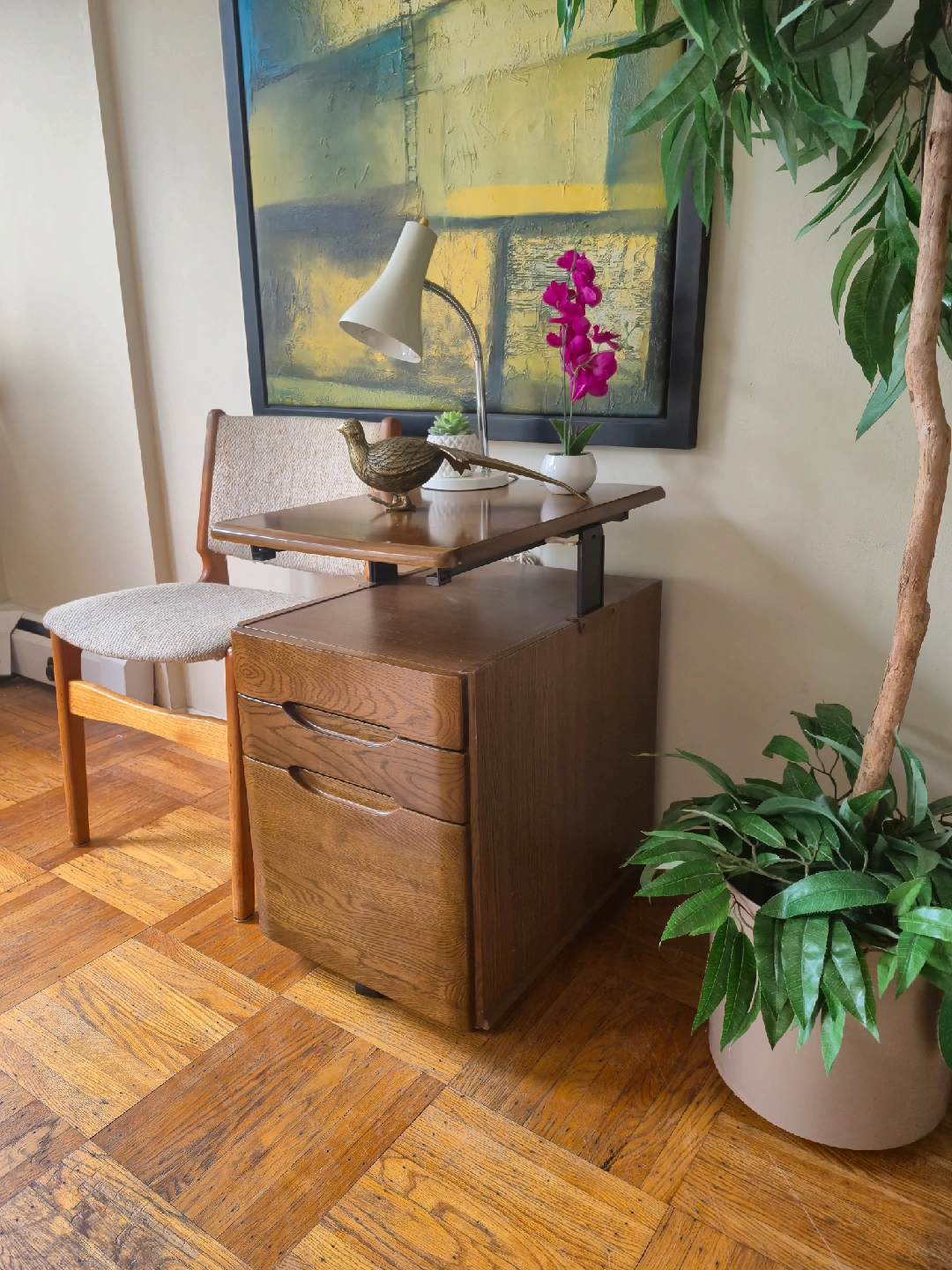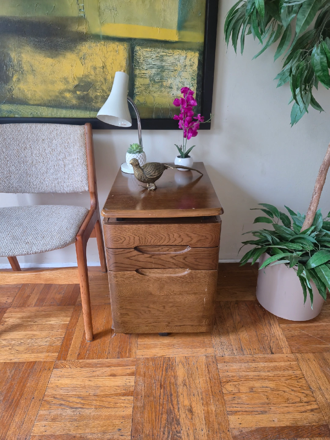 Wooden Side Table / Filing Cabinet with Lift-Up Top
