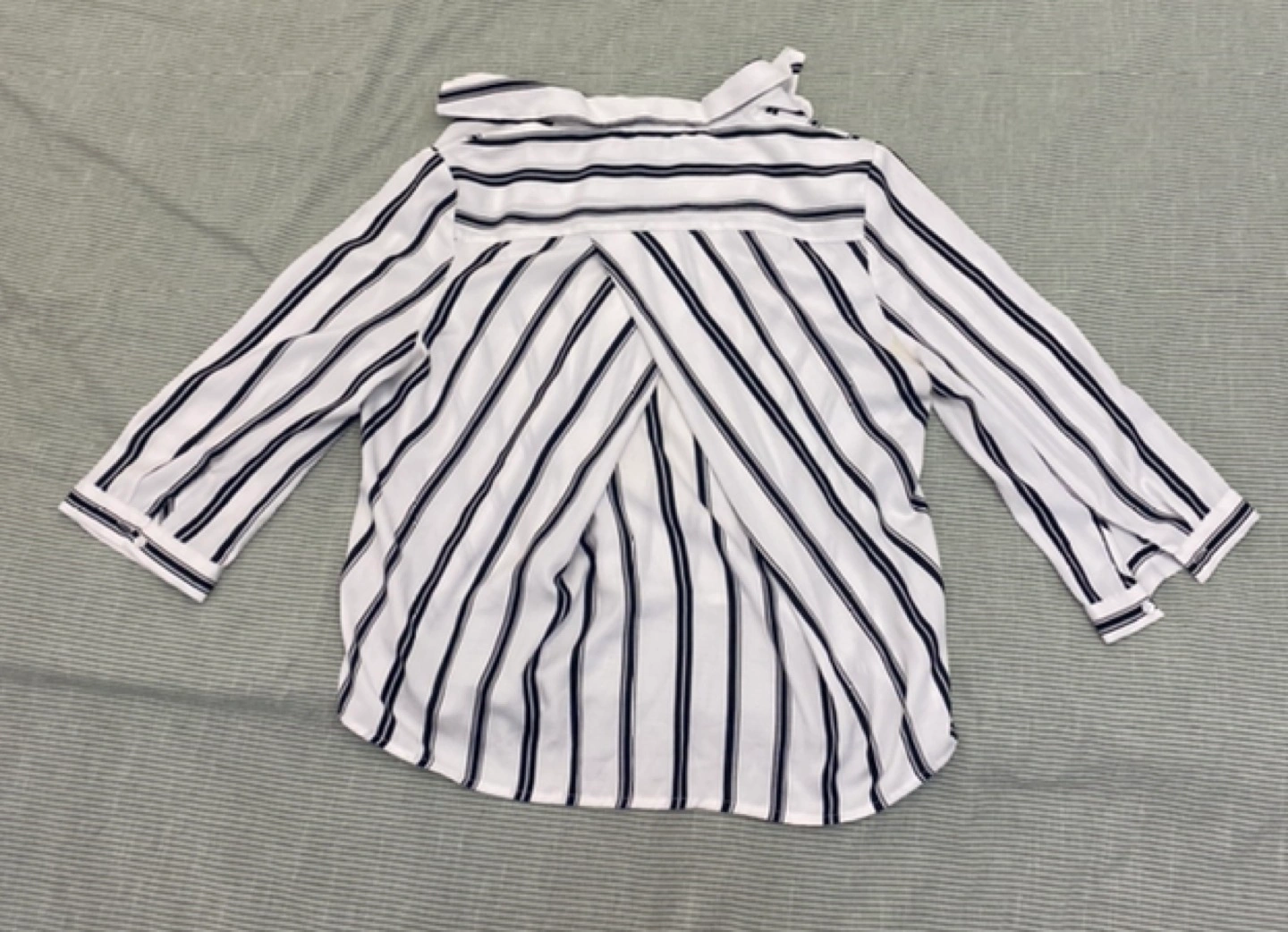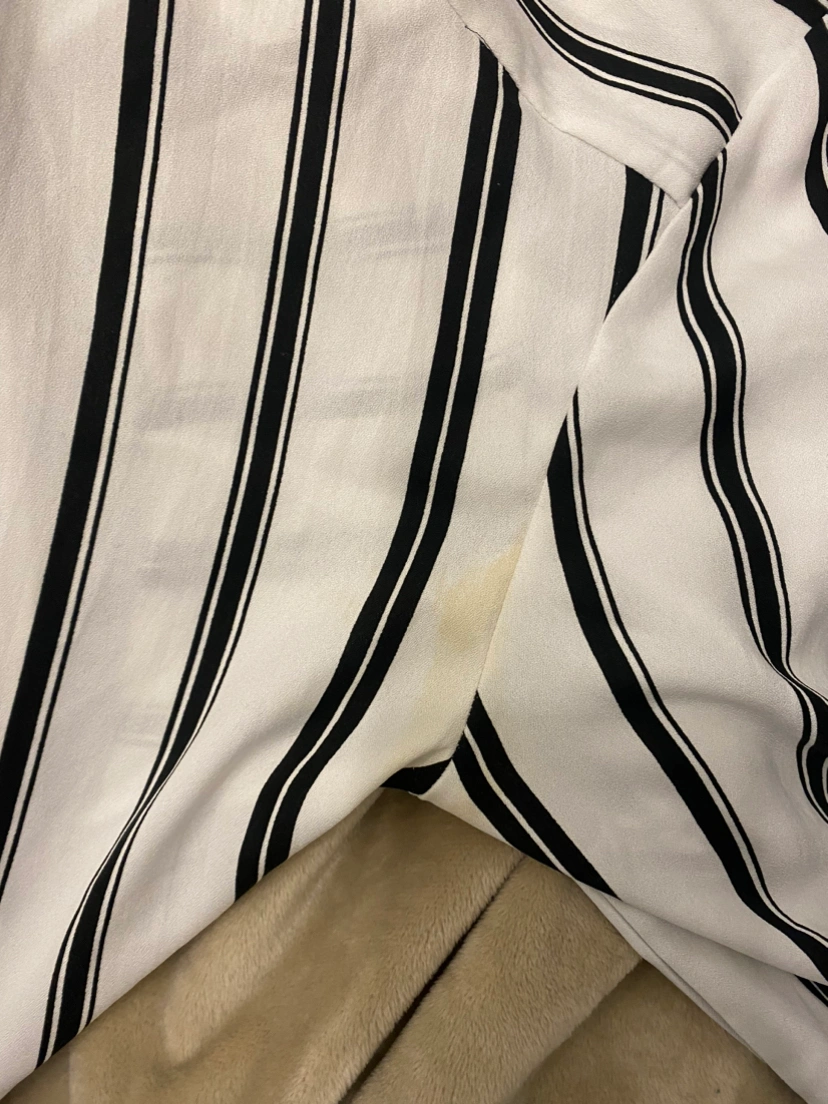 small discolouration on the shirt in the back that is generally only noticeable in harsh/very bright lighting (last two slides)!