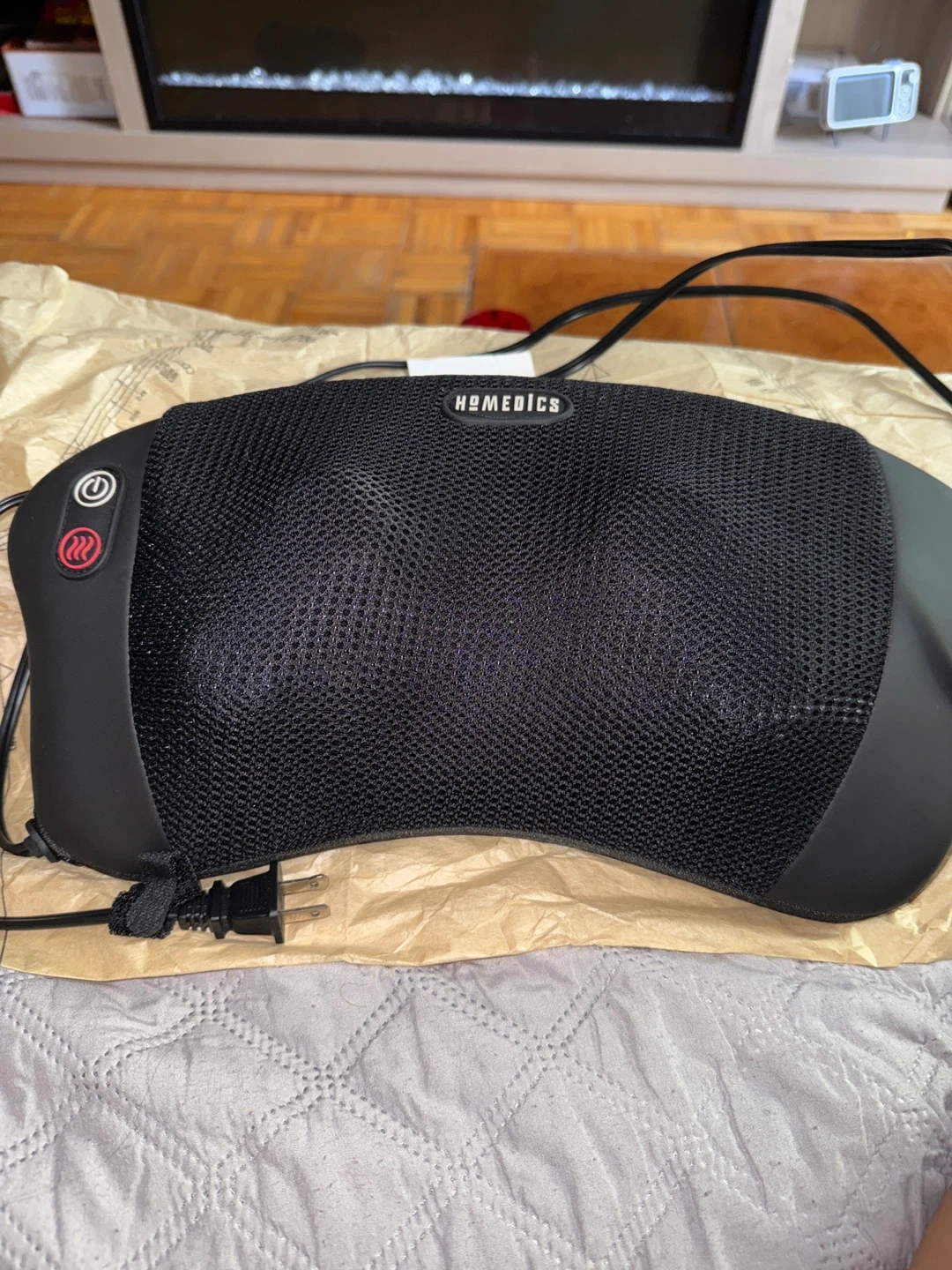 Selling a Homedics massage pillow! It's in great shape and ready to help you relax after a long day. It features a power button and a heat setting for extra comfort