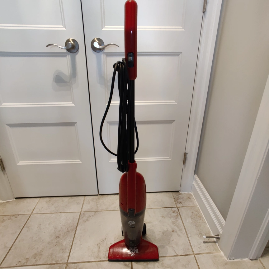 Selling a red Dirt Devil stick vacuum cleaner. It's in good working condition and perfect for quick cleanups around the house. Lightweight and easy to store!