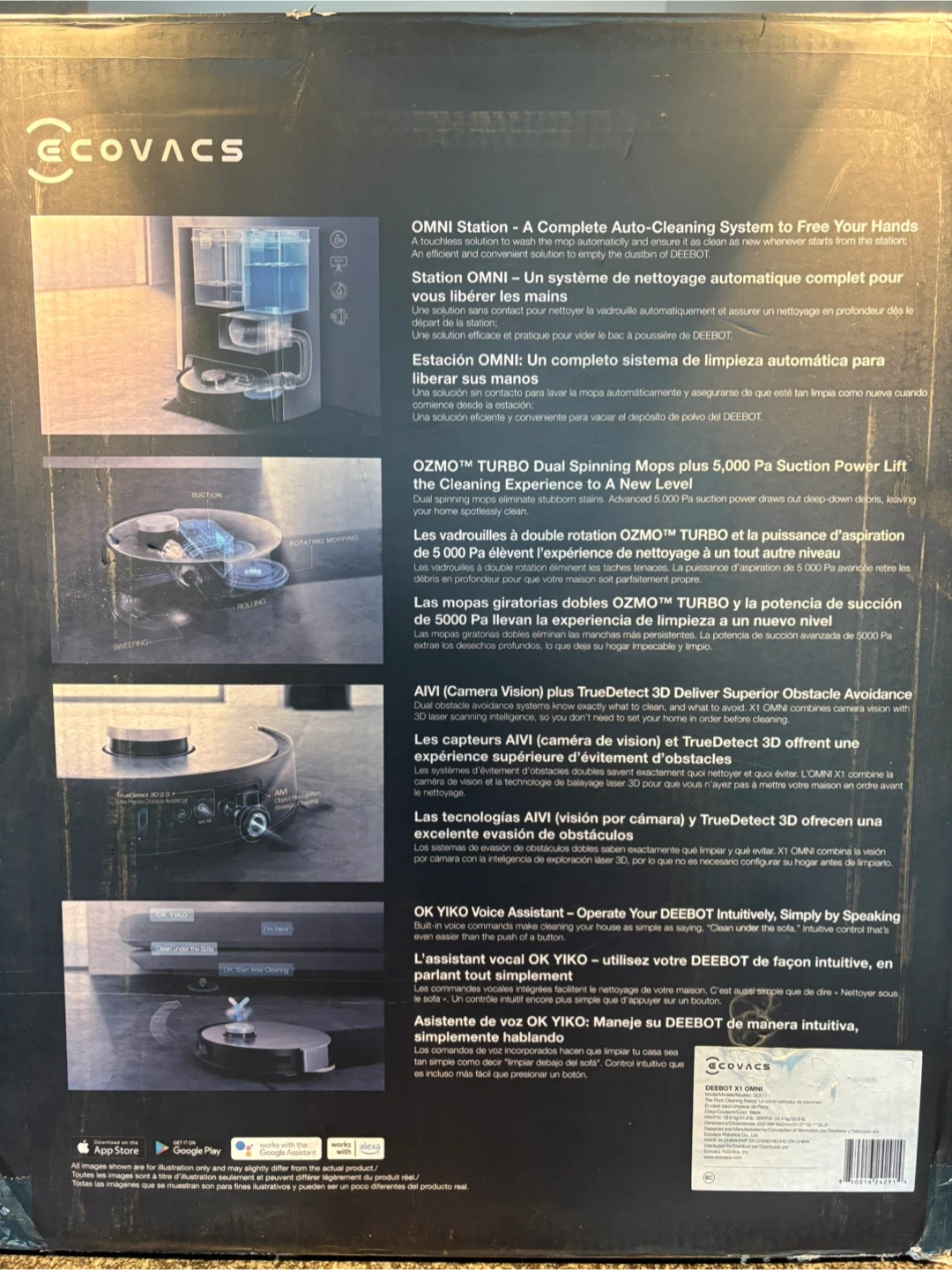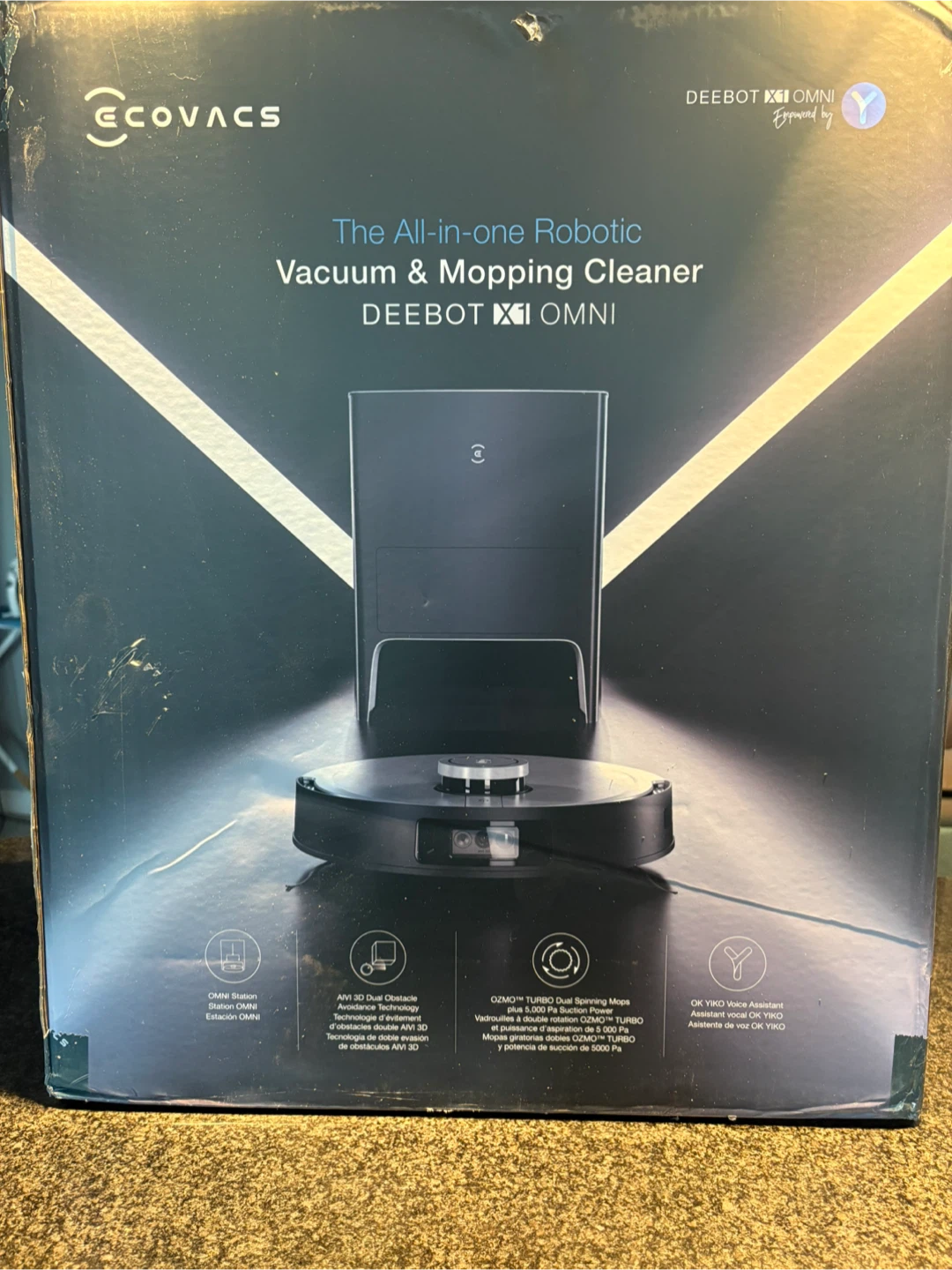 Selling a brand new open box Ecovacs DEEBOT X1 OMNI, the all-in-one robotic vacuum and mopping cleaner! It comes with the OMNI station, a complete auto-cleaning system that frees your hands. Enjoy OZMO Turbo dual spinning mops and 5000 Pa suction power for a next-level cleaning experience. The AIVI (camera vision) with TrueDetect 3D delivers superior obstacle avoidance. You can even operate your DEEBOT intuitively by speaking, thanks to OK YIKO voice assistant. Box included!