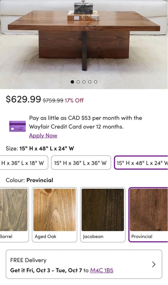 Solid wood coffee table - Brand new in box