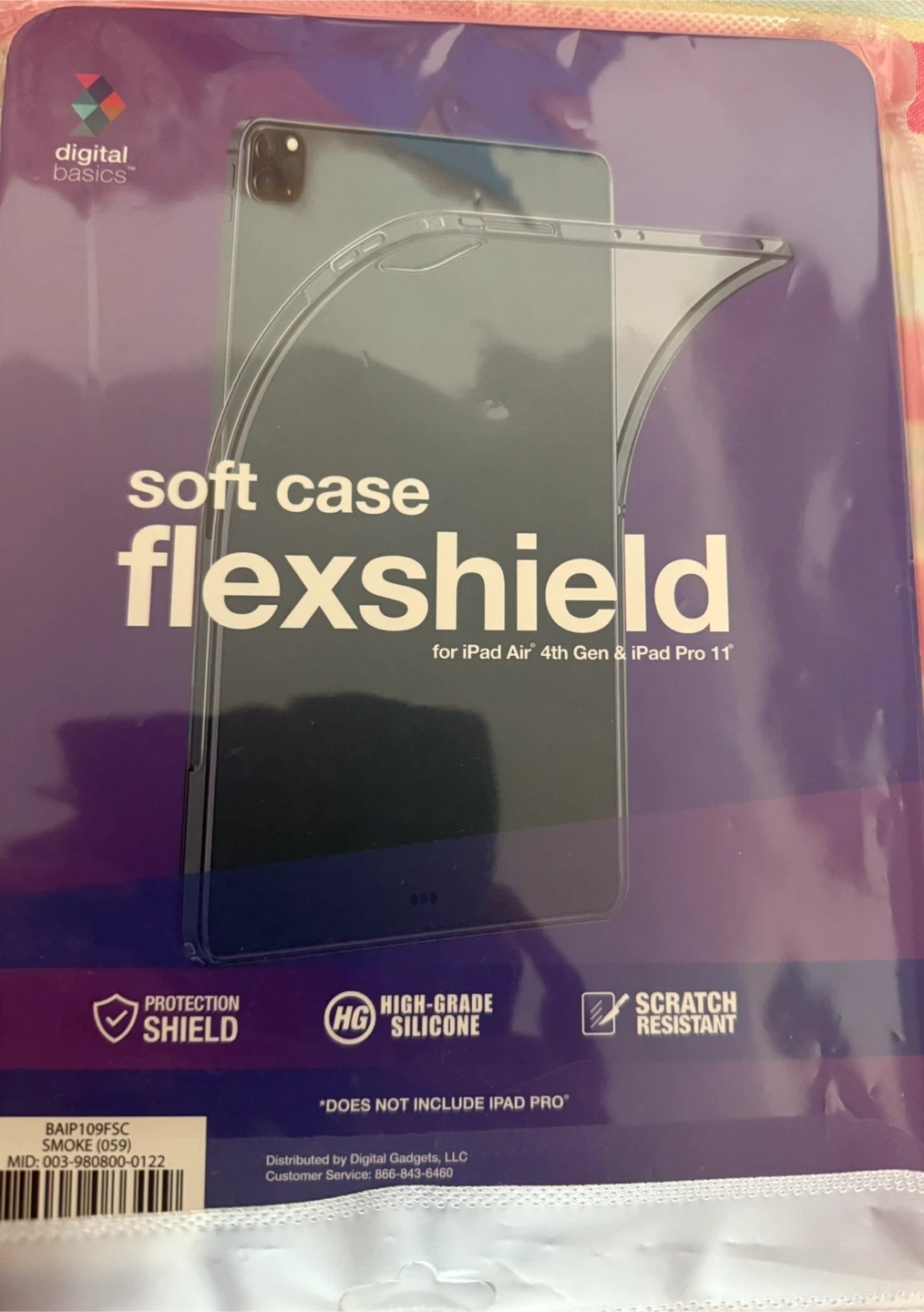 Selling a brand new Digital Basics Flexshield soft case for iPad Air 4th generation and iPad Pro 11. It's a smoke-coloured case made from high-grade silicone and is scratch resistant. It offers protection for your iPad!