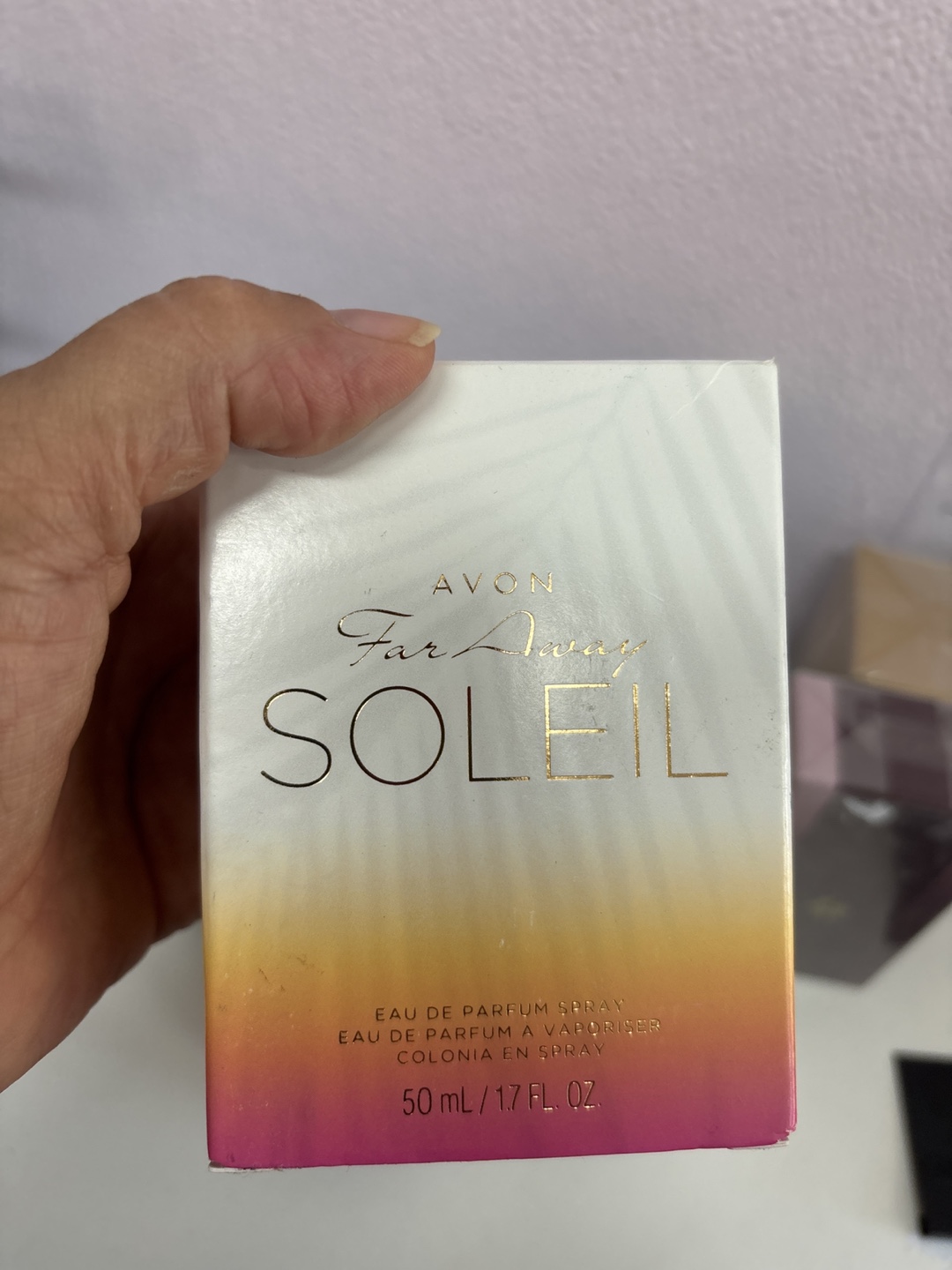Selling a bottle of Avon Far Away Soleil perfume. It's an eau de parfum spray and comes in a 50 mL / 1.7 fl oz bottle. Perfect for everyday wear!