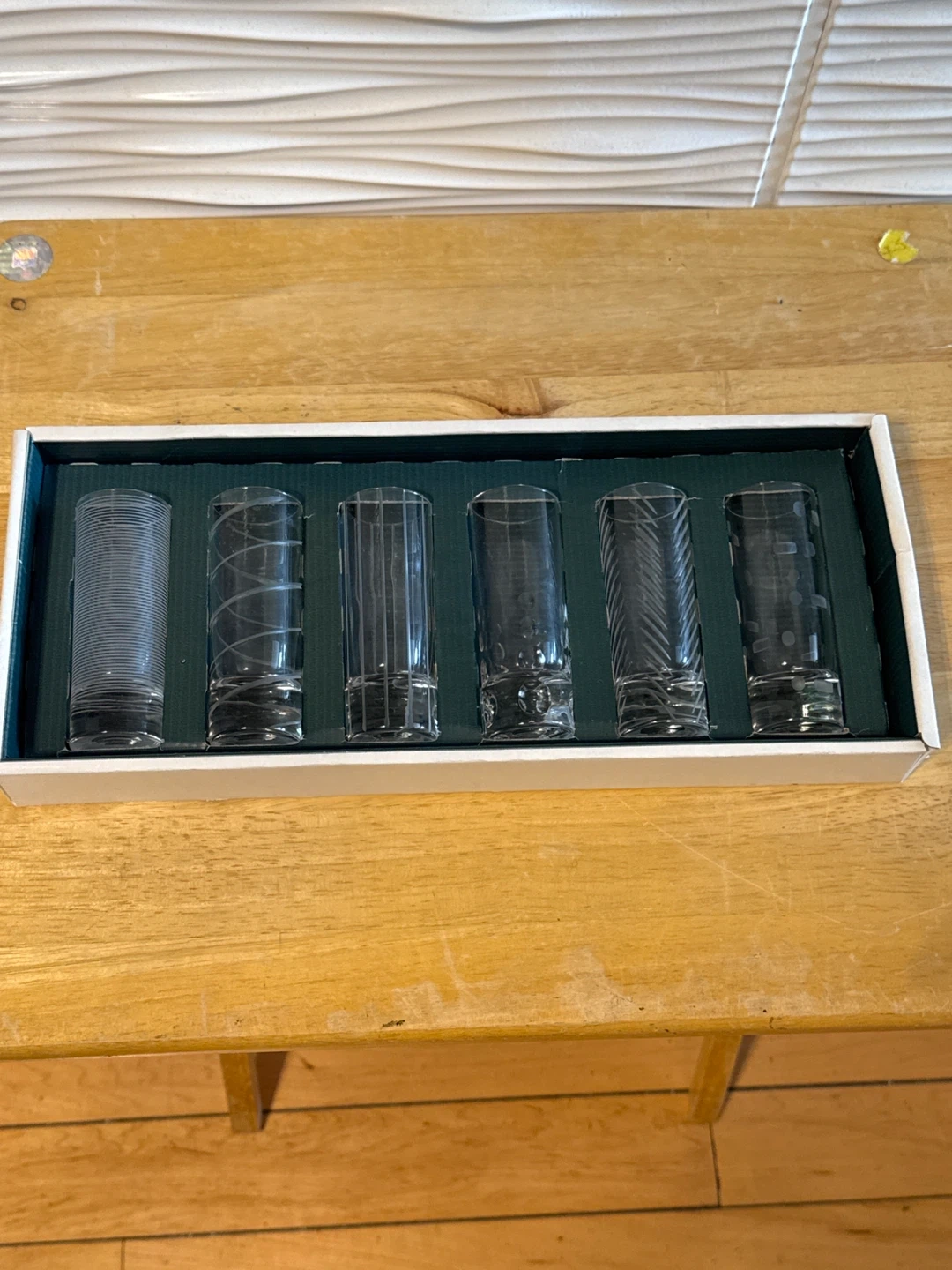 Selling a set of six JG Durand shot glasses! They come in their original box and each glass has a unique design. Perfect for adding a touch of elegance to your home bar or for entertaining guests