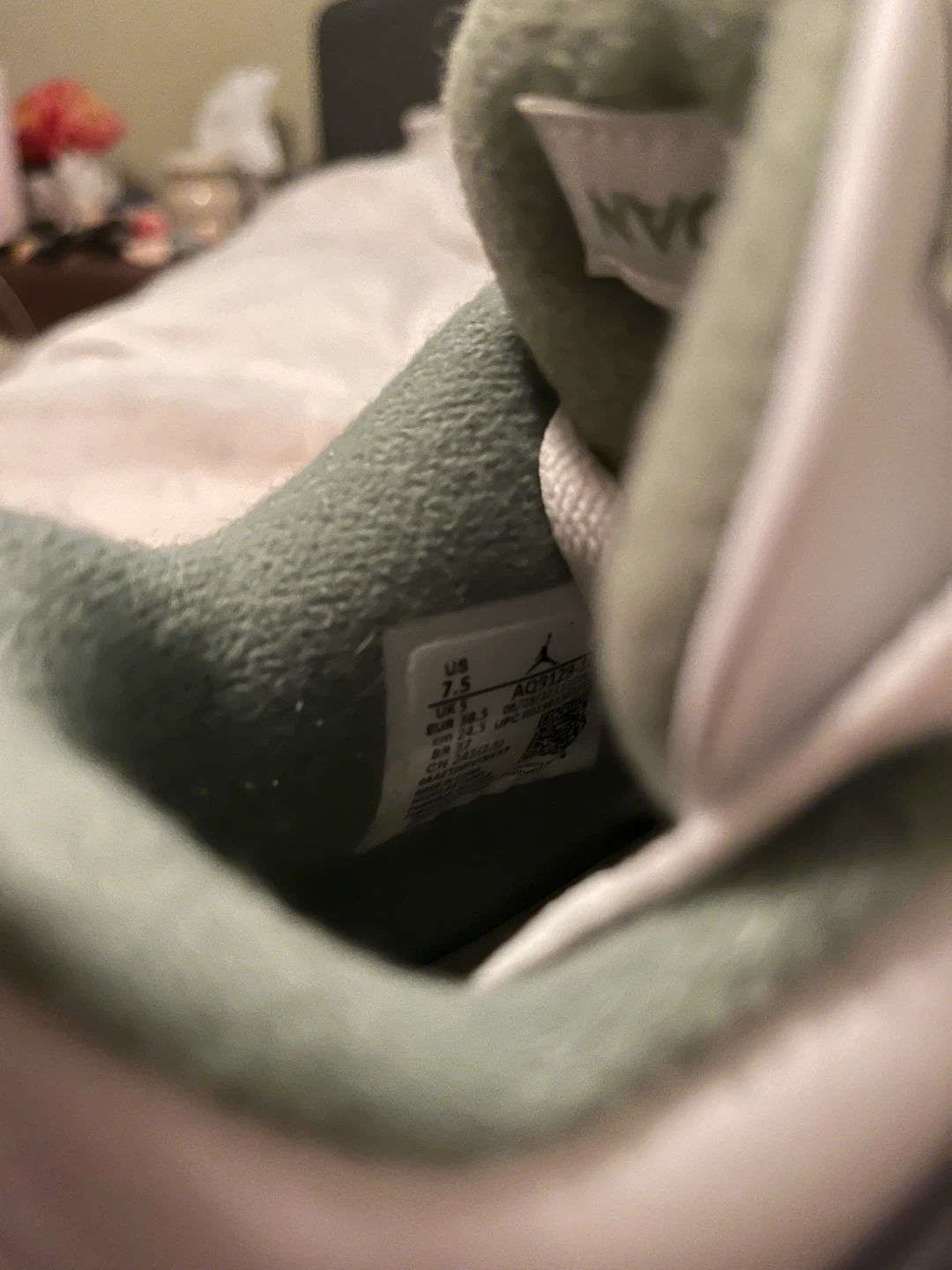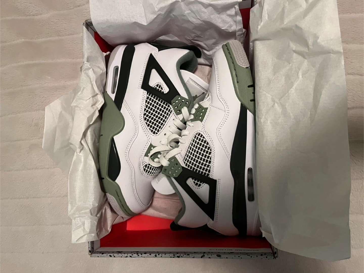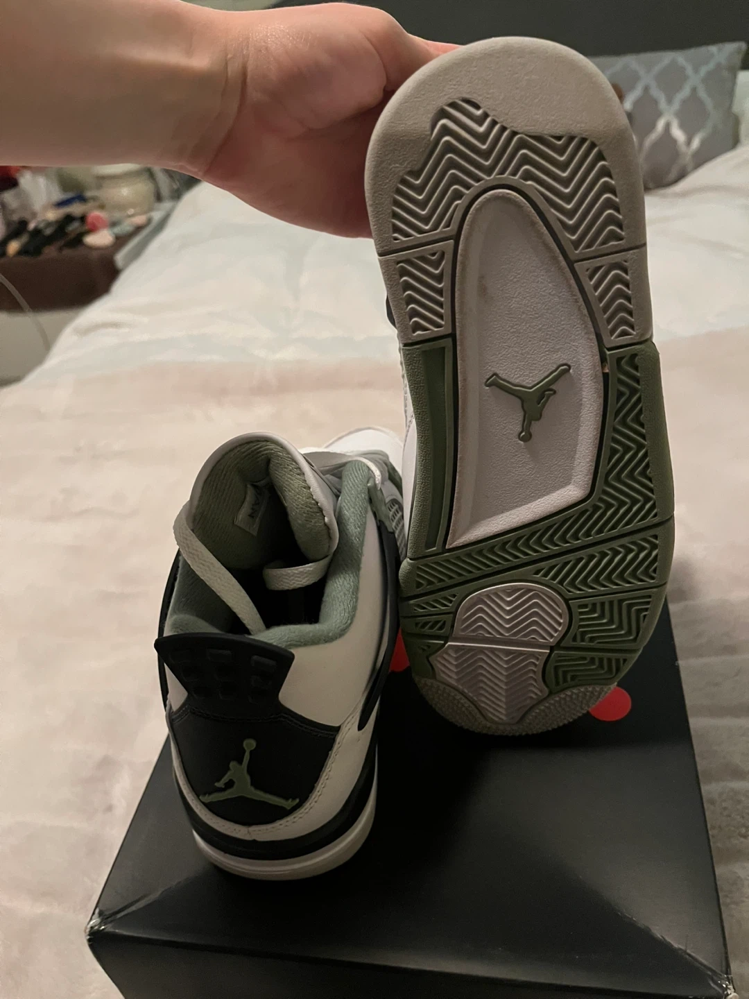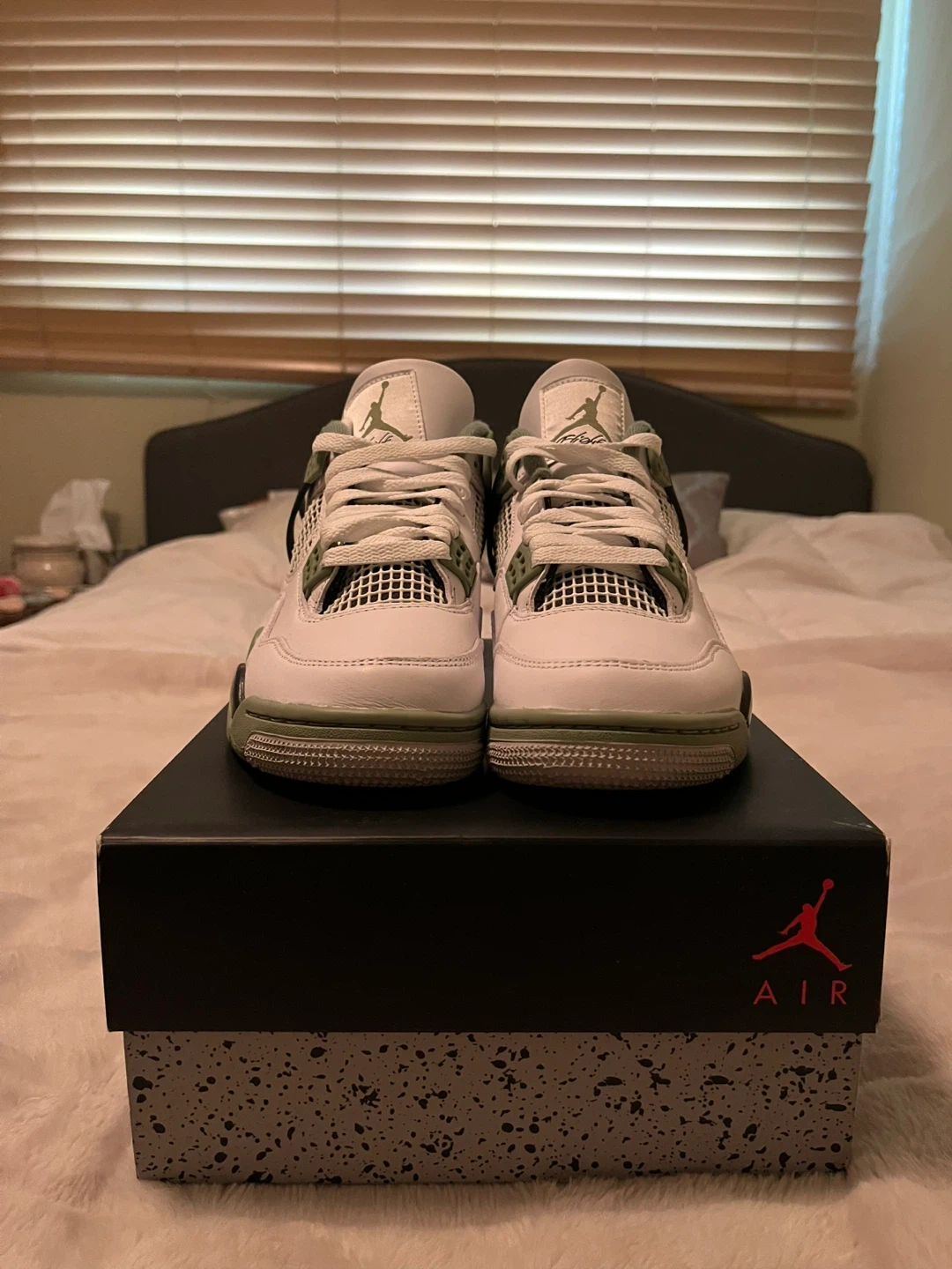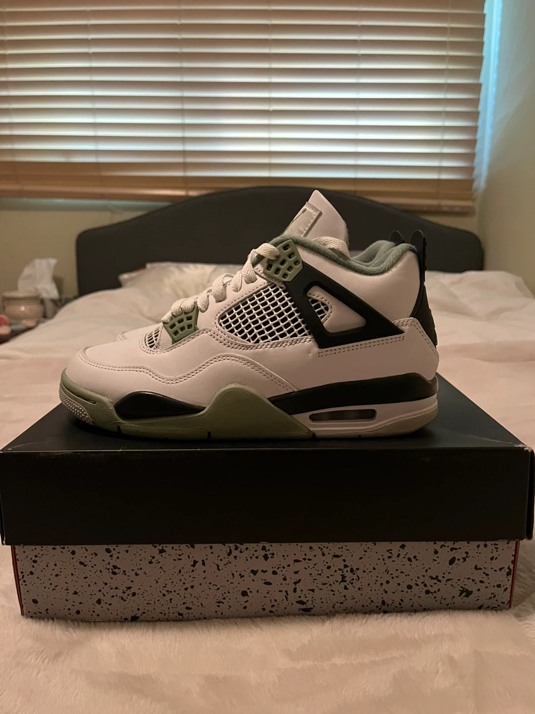 Selling a pair of Air Jordan 4 Retro sneakers in the Seafoam colourway! They are a women's size 7.5 and come with the original box. The shoes are in great condition (only worn once!) and ready for a new home.