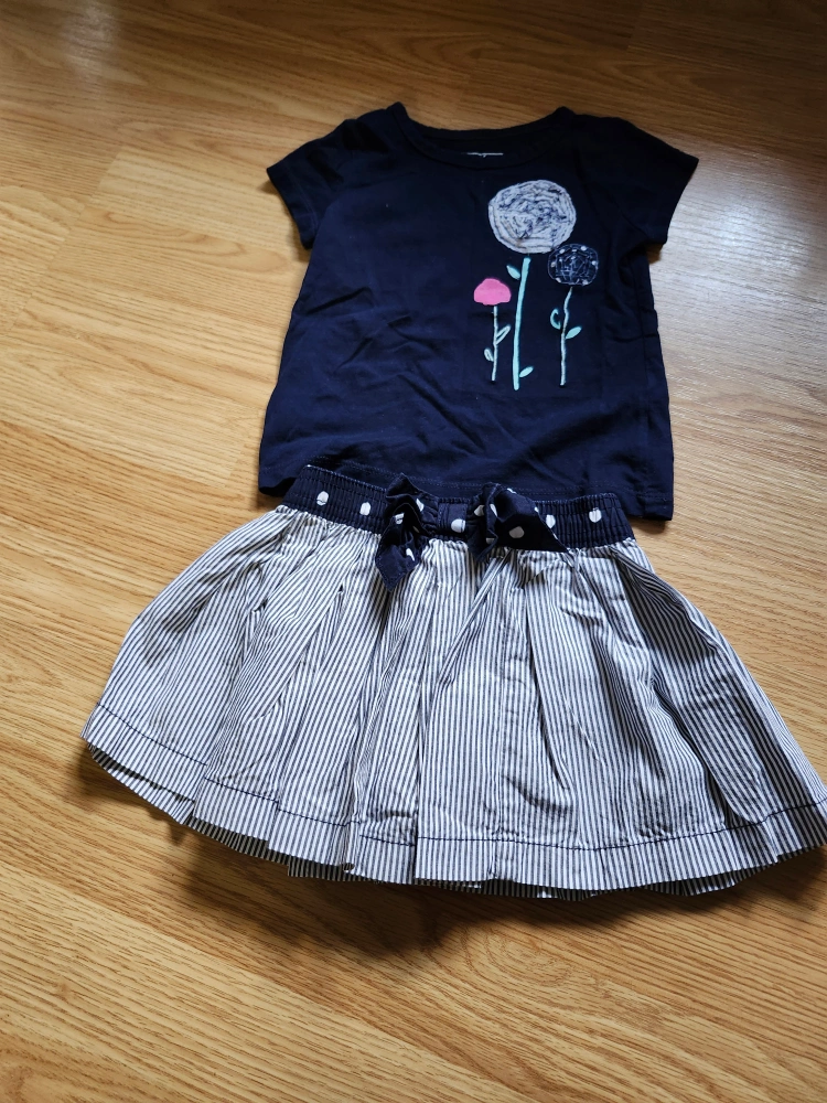 navy blue top and skirt white and navy stripes from OshKosh. 24 months. Both