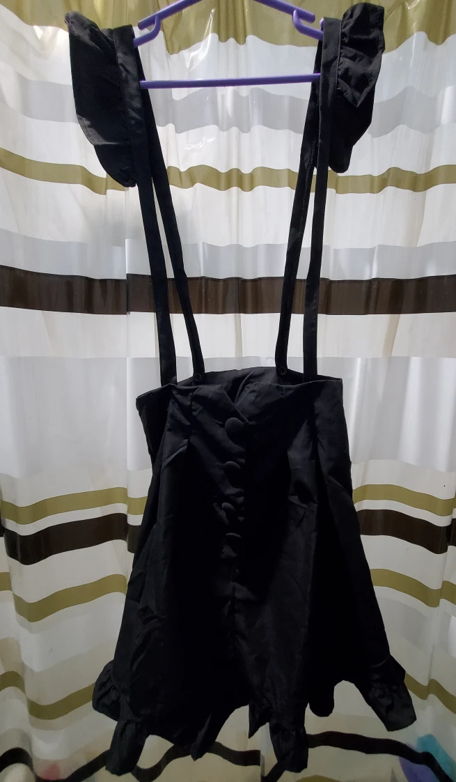 Selling both the blouse and suspender skirt. The skirt is approx 66 cm at the waist and sits higher at the waist. I think it could fit up to about 68 cm waist. The straps can be removed. The blouse could fit a small to medium and has a built-in choker. In great condition, I have only tried it on. $35. **Please note colours may vary ever so slightly due to lighting differences and there may be oversights in inspection or error in manual measurements by 1-2 cm since it's an amateur measurement.
