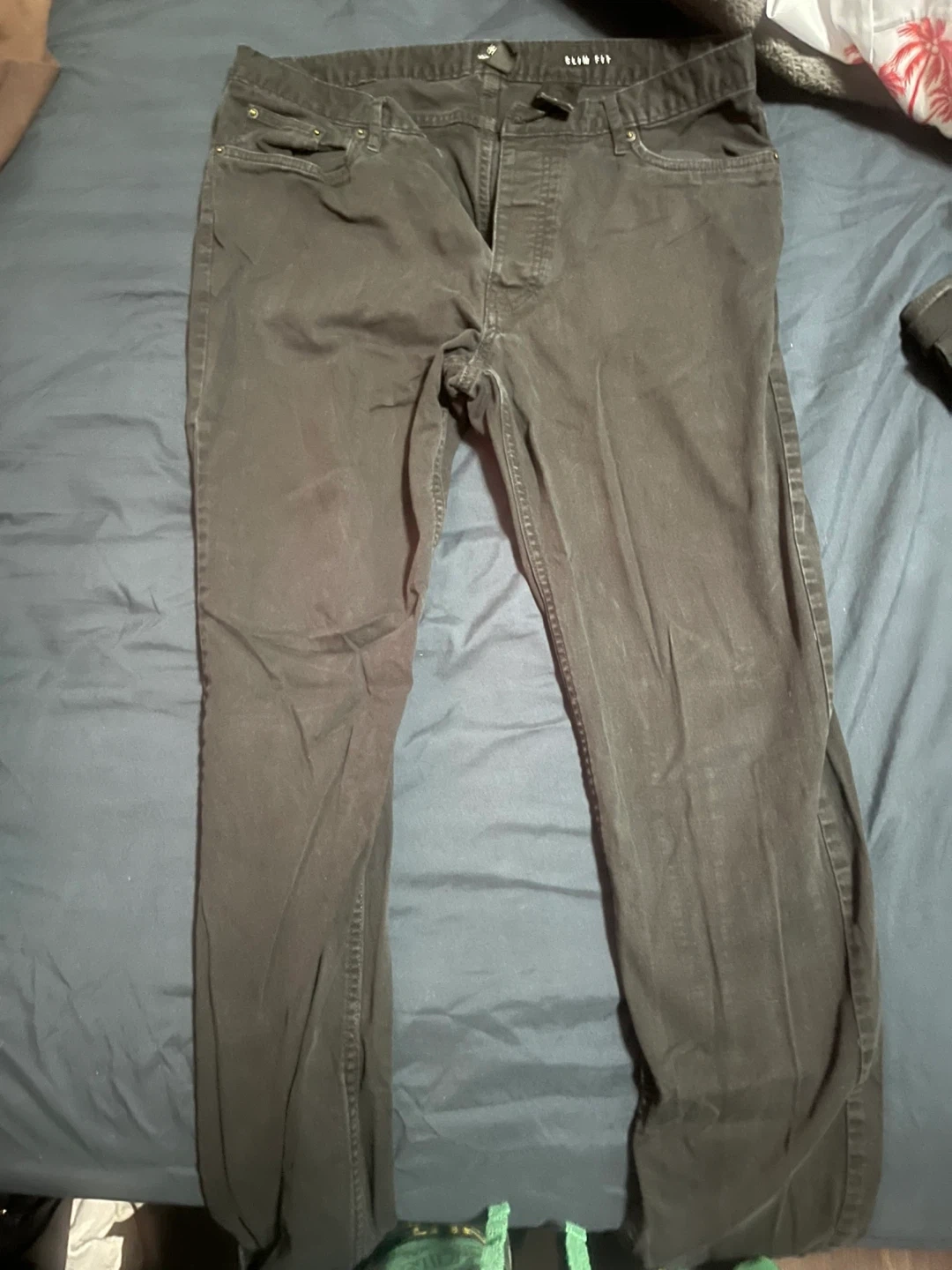 Selling a pair of H&M slim fit jeans in black. They are size 34. These jeans are in good condition and ready for a new home