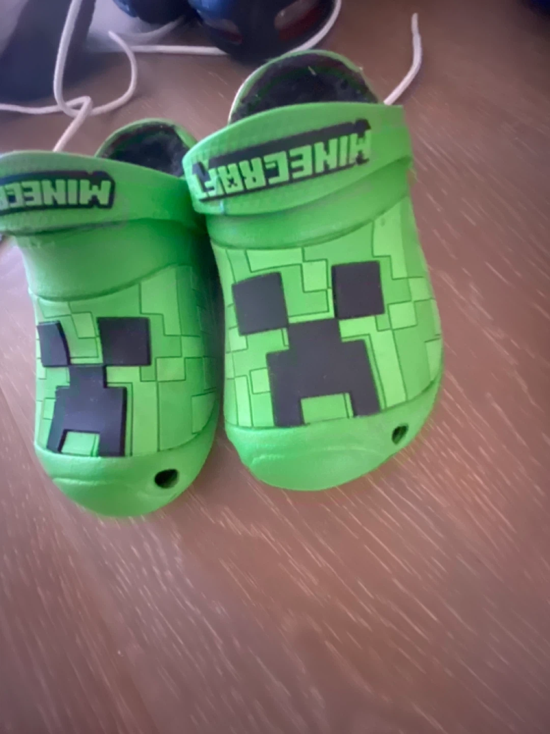 Selling a pair of Minecraft Creeper clogs in size 8. They are green with the Creeper design. Great for any Minecraft fan! Brand new just been in storage