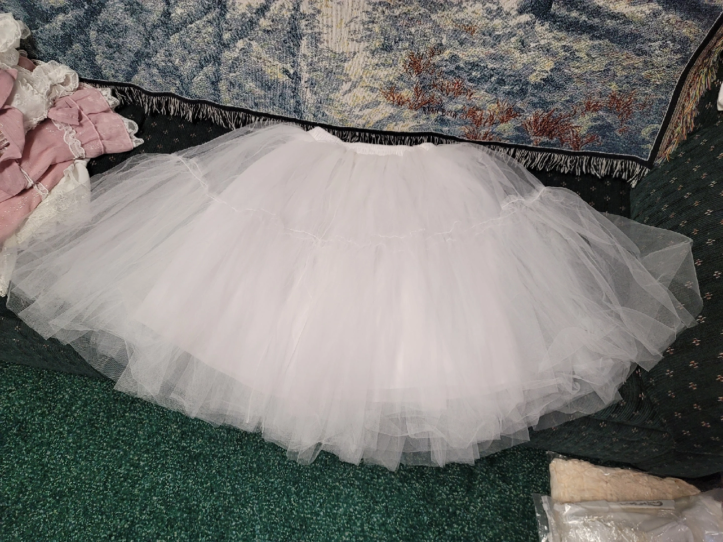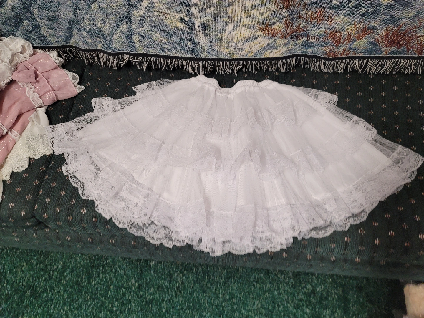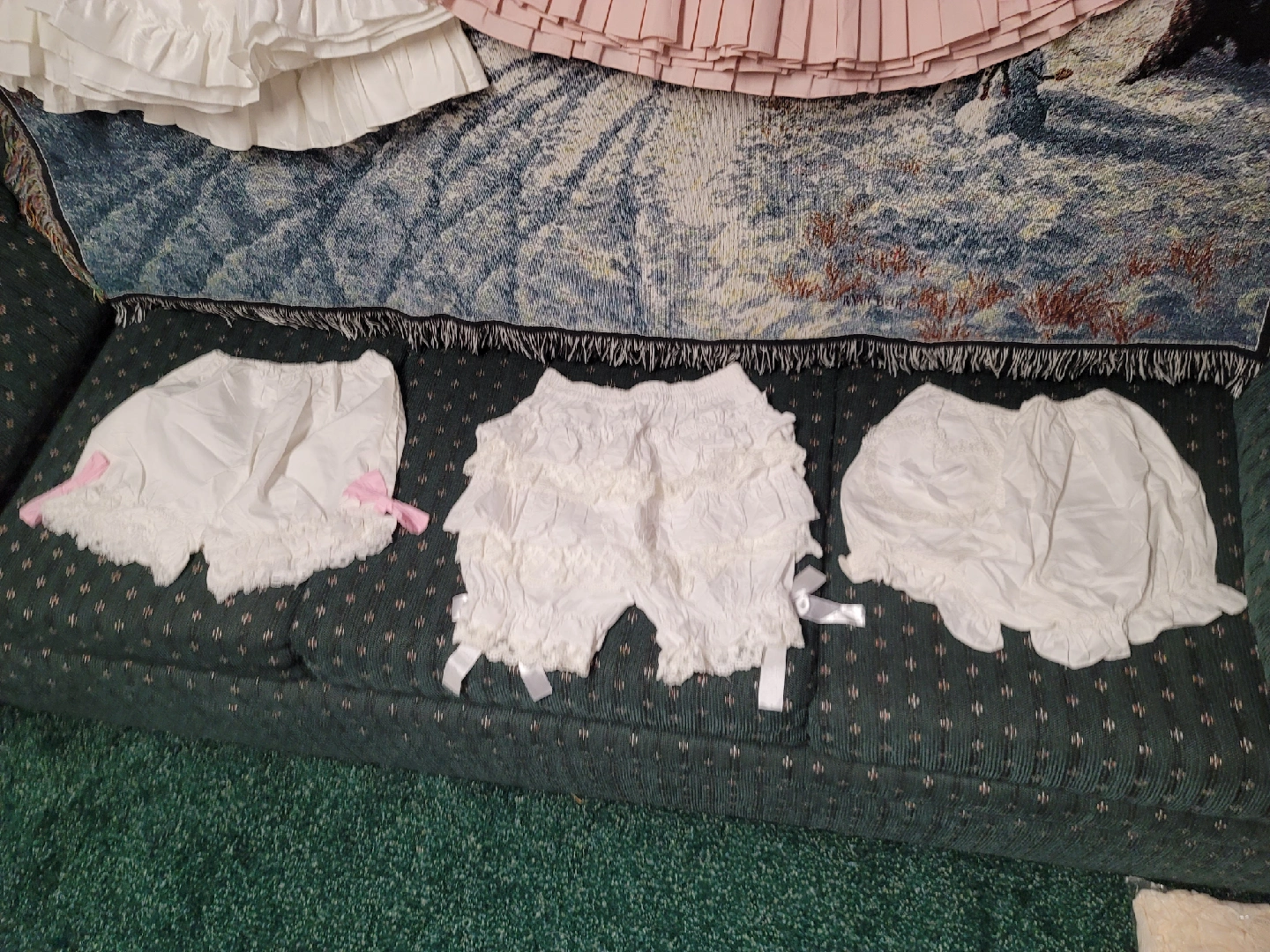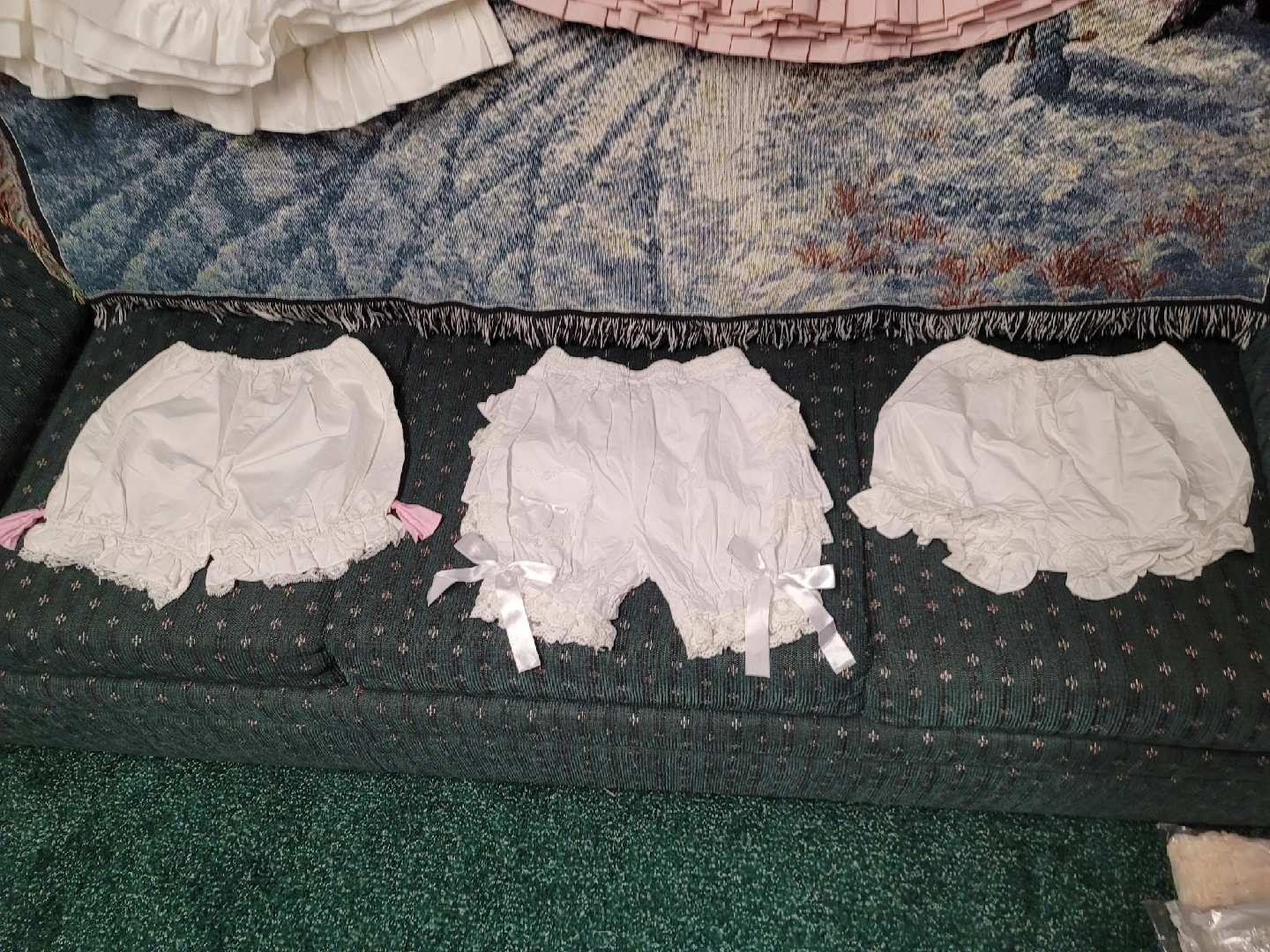 Selling a set of white lolita bloomers and petticoat. They are in great condition and perfect for adding volume to your lolita dresses or for a cute, frilly look. 3-Tiered w/Lace Petticoat = $20 3-Tiered Petticoat = $50 Fluffy Petticoats = $30/each Long/Big Petticoat = $60 Bloomers = $20/each