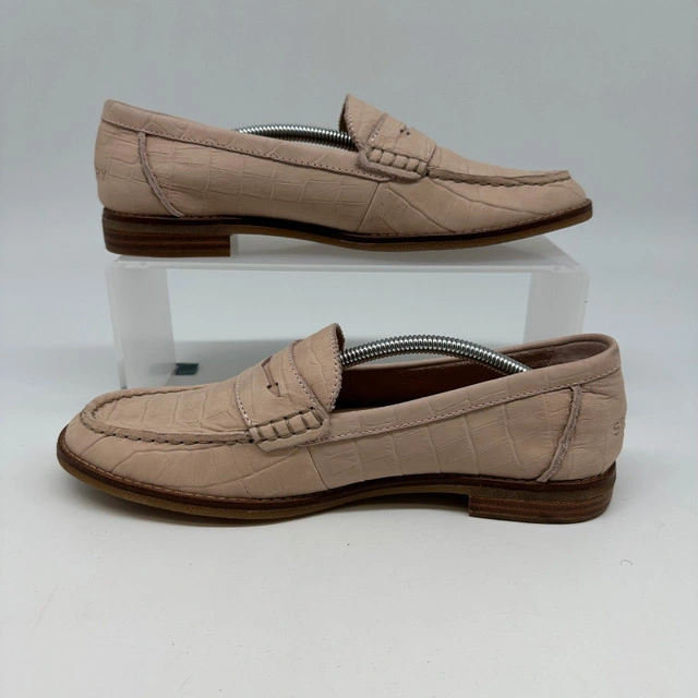Sperry Women’s Croc-Embossed Leather Loafers, size 9. These stylish loafers feature a beautiful croc-embossed leather design. New without tags. Colour: Beige. Priced at $85.