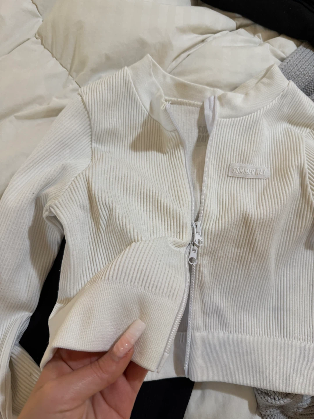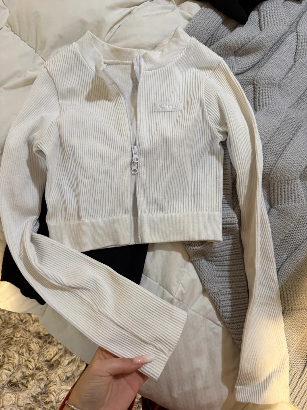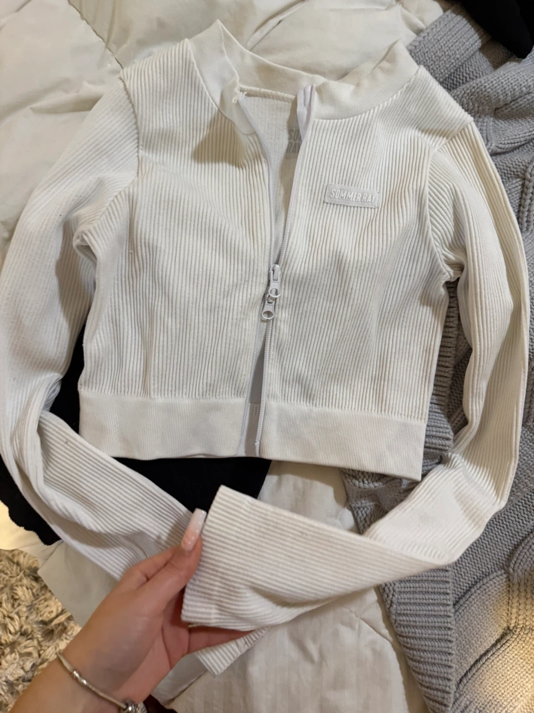 Selling a cute Sommer Ray cropped jacket! It's a ribbed material with a zipper down the front. The jacket is white and in great condition, ready for a new home