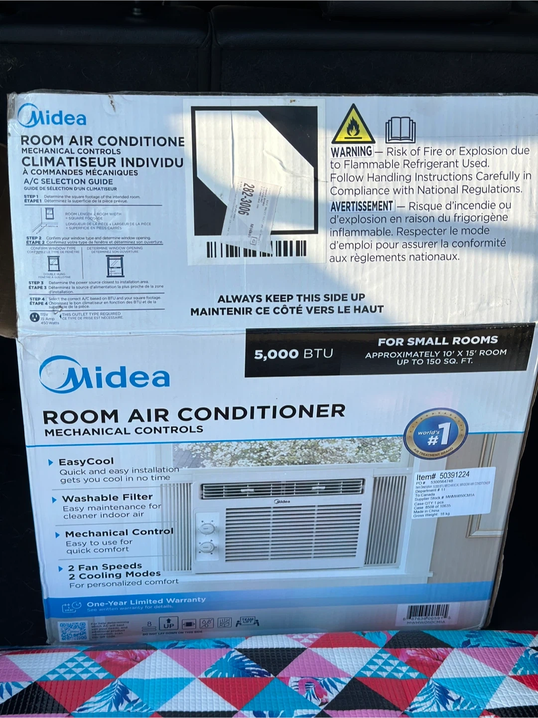 Selling a Midea 5,000 BTU room air conditioner. It's perfect for small rooms, approximately 10' x 15' or up to 150 sq ft. Key features include: - Easycool for quick and easy installation - Washable filter for cleaner indoor air - Mechanical control for quick comfort - 2 fan speeds and 2 cooling modes for personalized comfort It also comes with a one-year limited warranty!