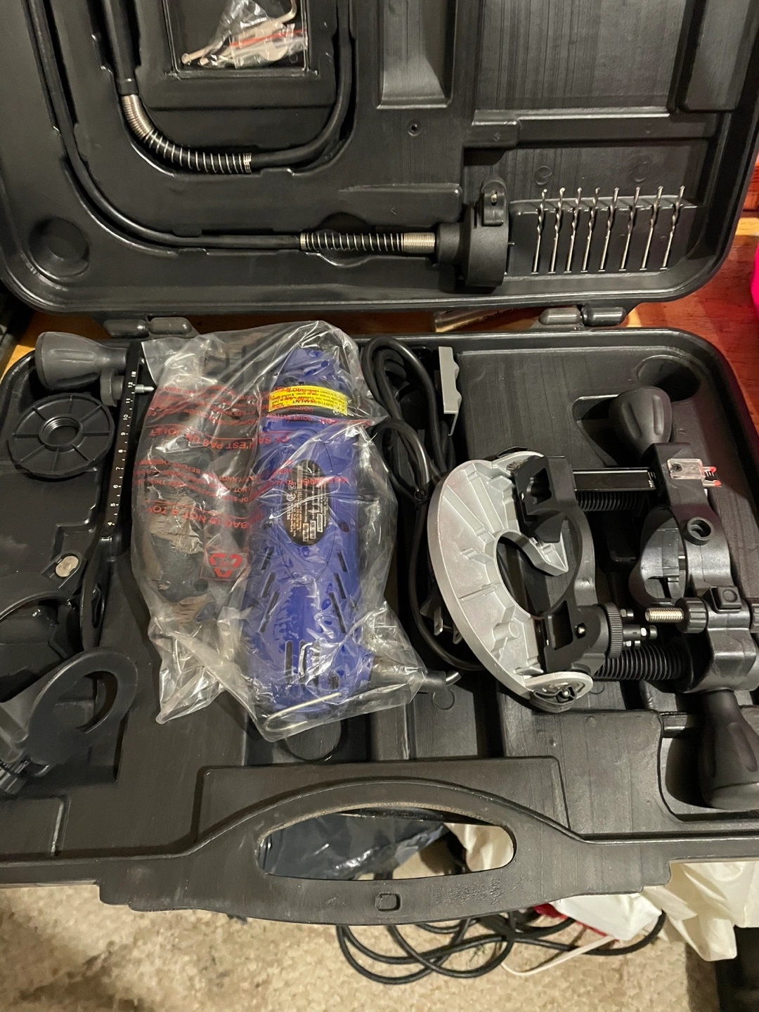 Selling a Power Smith PS3501K Dual Speed Rotary Cutter Kit. It comes with the instruction manual and the original case. The kit includes: Bevel/Plunge Router Base, Removable Handle, Free Hand Base, Flexible Shaft Attachment, Circle Cutting Guide, 4 wrenches, 1/8" and 1/4" collets and 8 spiral bits. Collet capacity is 1/8" & 1/4", and the maximum depth of cut is 1" cash only no e-transfers please thank you