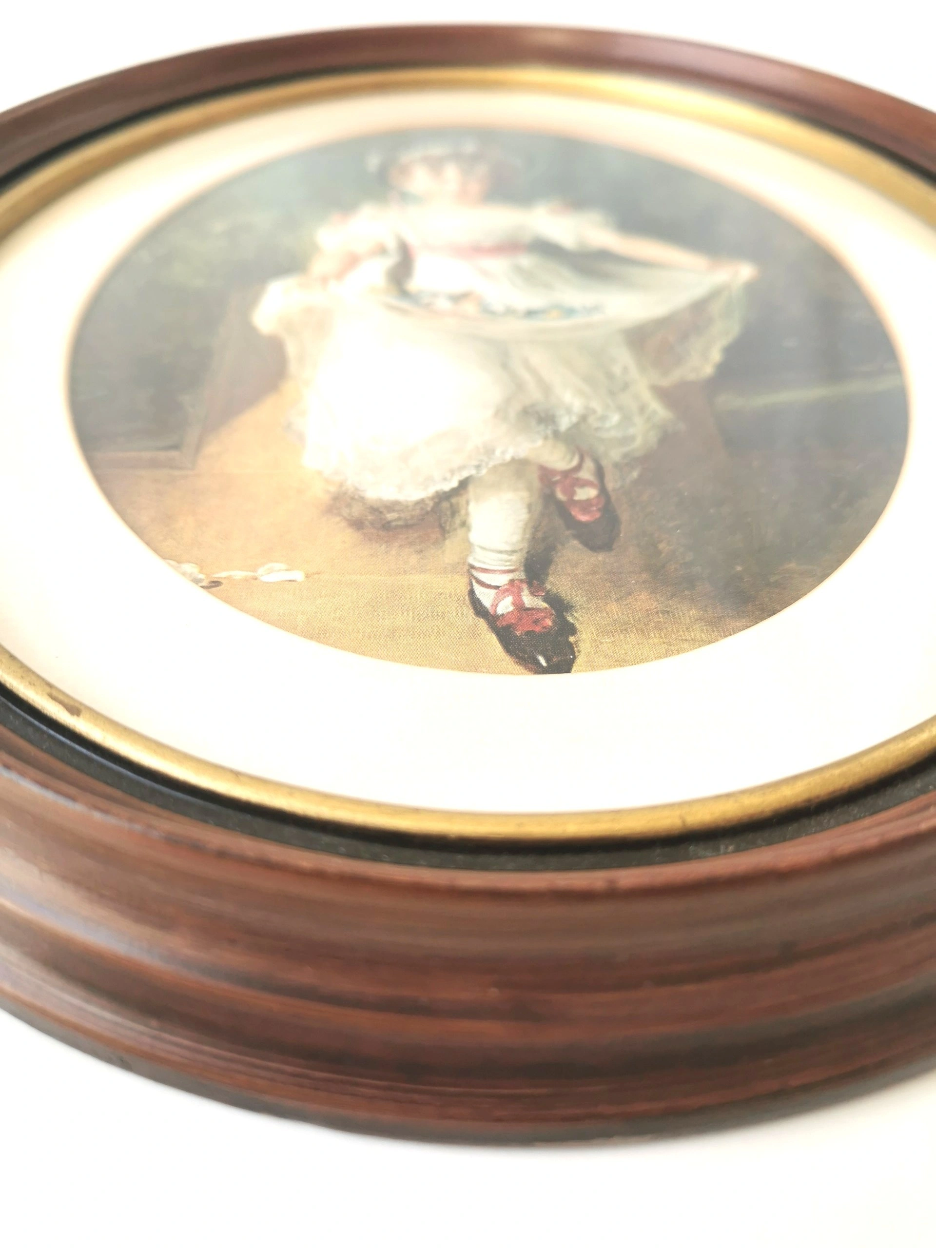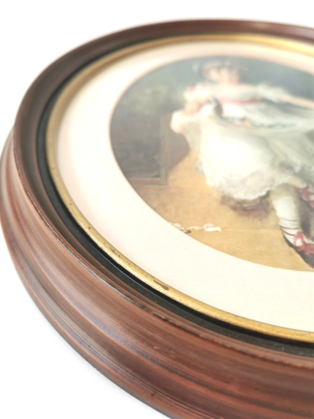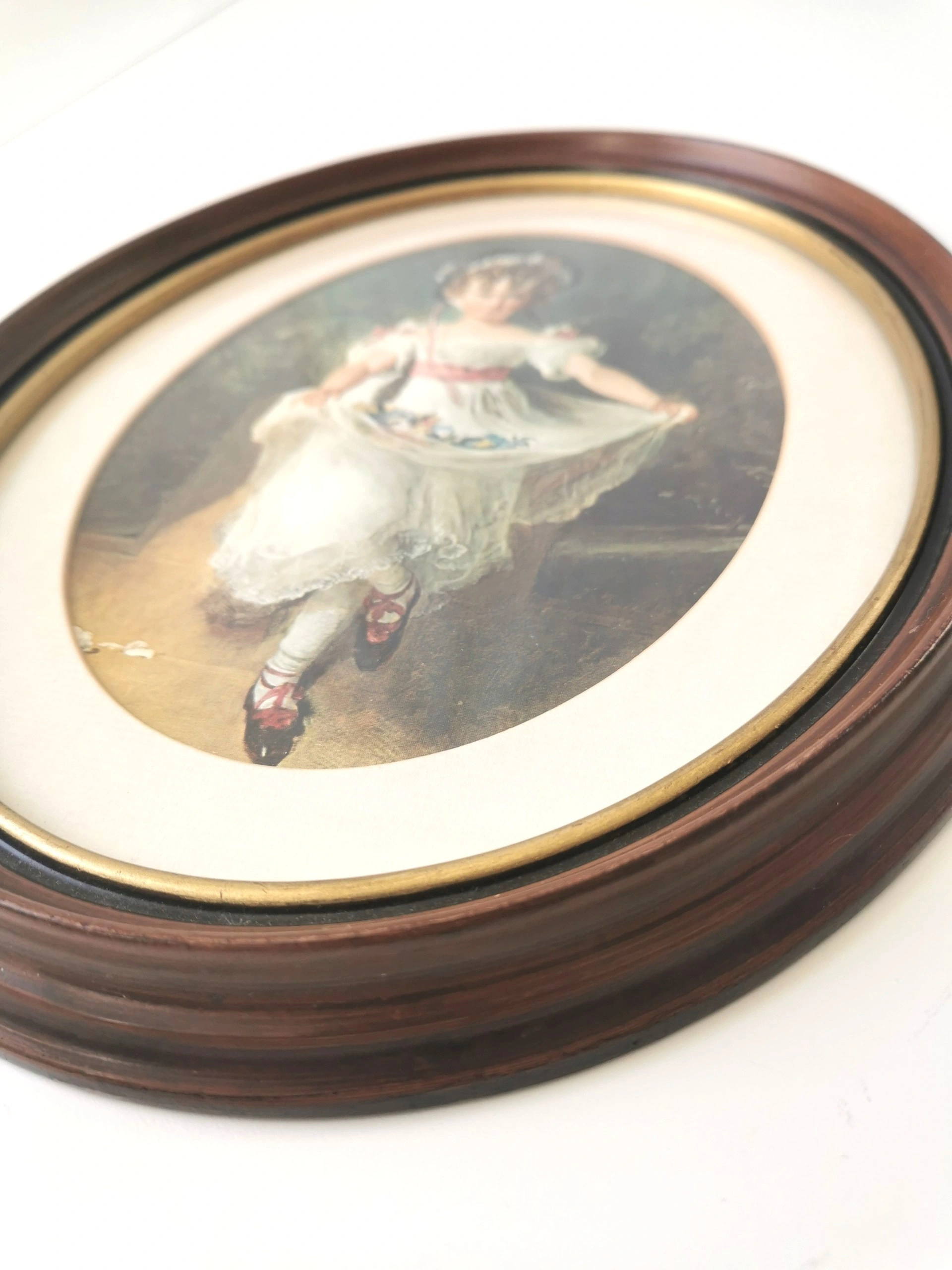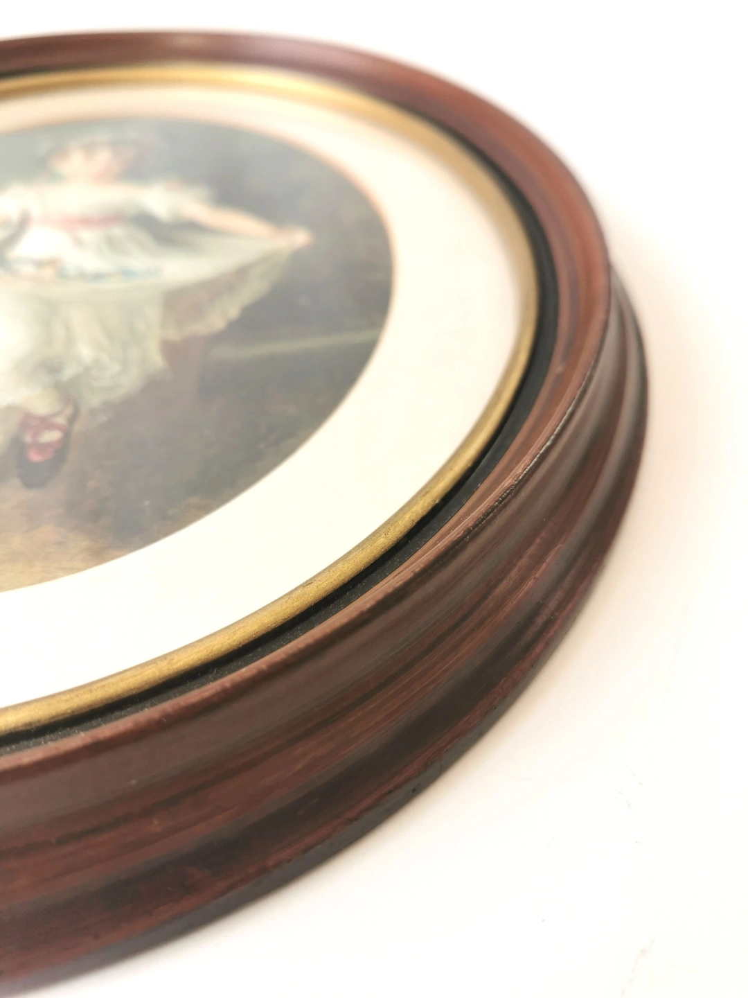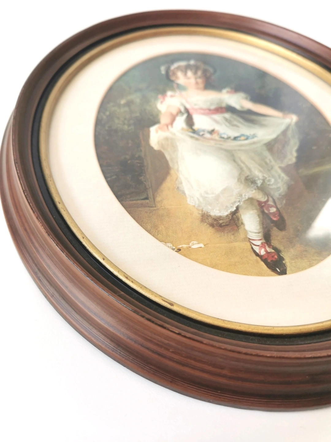 Medium-sized print by Sir Thomas Lawrence, featuring a portrait titled "Louisa Georgina Augusta Anne Murray Vintage." The artwork depicts the child in a classic style, with influences from Italy. Beautiful brown hard wood frame. Dimensions- Height 10.75 inches, Width 9 inches, Depth 1 inch Good vintage condition light wear blemish on rear paper covering pleae reference photos as part of the description.