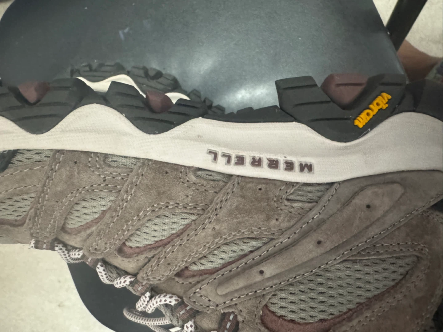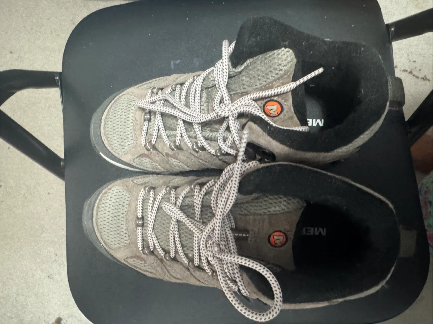 A half size small for me. Selling a pair of almost new Merrell women's hiking boots, model J036596W. They're a size 6.5 WIDE and have Vibram soles for great traction on the trails. These boots are perfect for your next outdoor adventure!
