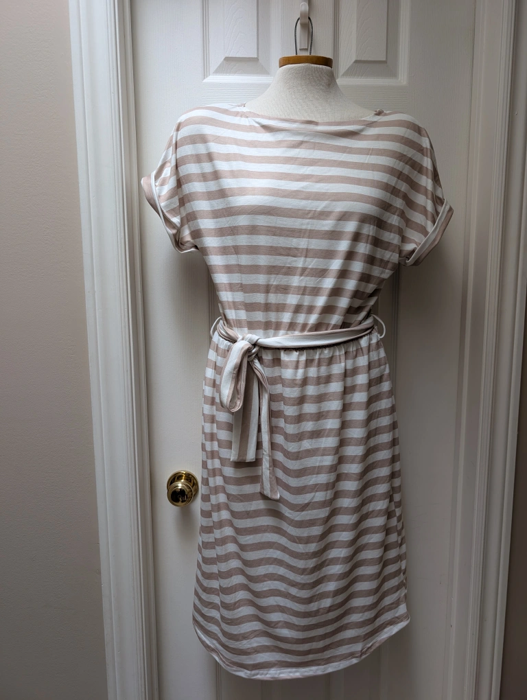 Cute striped t-shirt dress from Shein. It features a tie belt at the waist. Perfect for a casual day out or lounging at home Porch Pick up Ajax Church and Delaney Please see My profile for more items