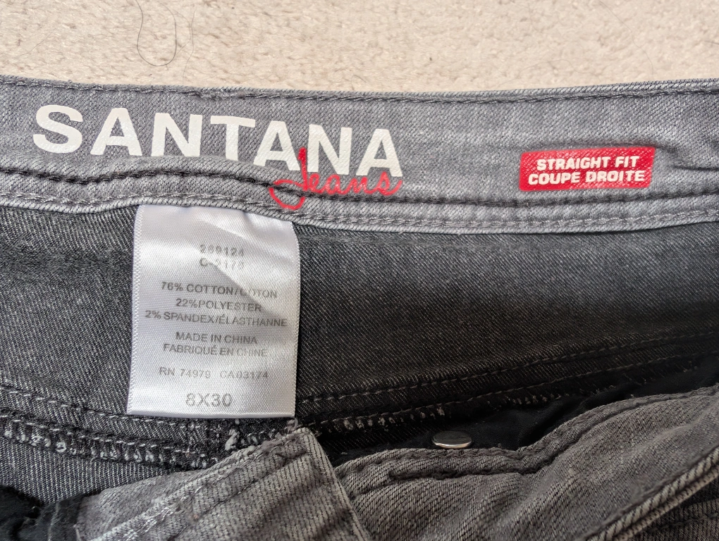 Selling a pair of Santana straight fit jeans in size 8x30. They're made of 76% cotton, 22% polyester, and 2% spandex/elastane. Porch Pick up Ajax Church and Delaney Please see My profile for more items