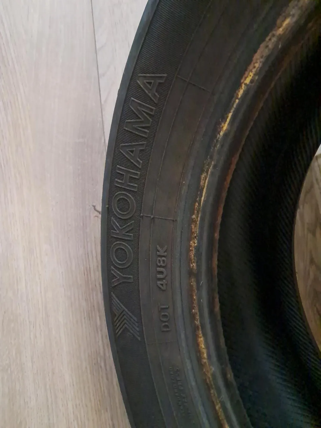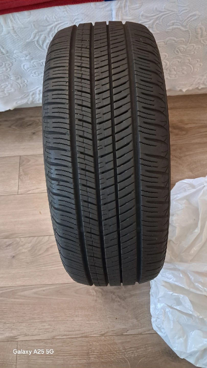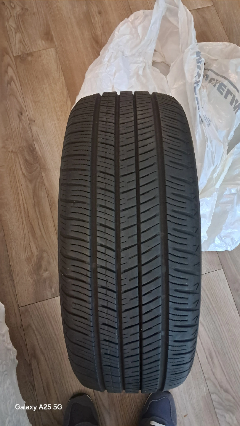 Selling a Yokohama tire. It's in good condition and ready for a new vehicle 205/55/R16 91H four tire with stipni with rim 50% left this is nissan santra tires I am moving no need more I sell my car it's spare now